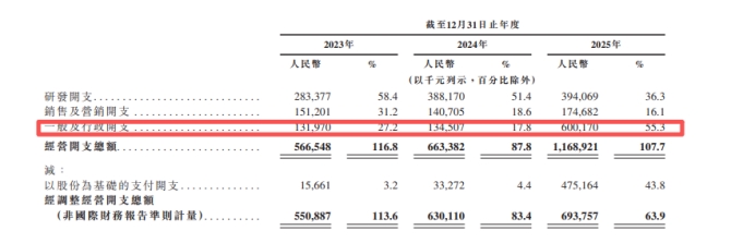 值得关注的是,2025年,SmartMore一般及行政开支增至6亿元,同比增长超3倍,占当期营收比例达到55.3%。根据招股书显示,2025年,公司以股份为基础的支付费用同比出现较大增长。