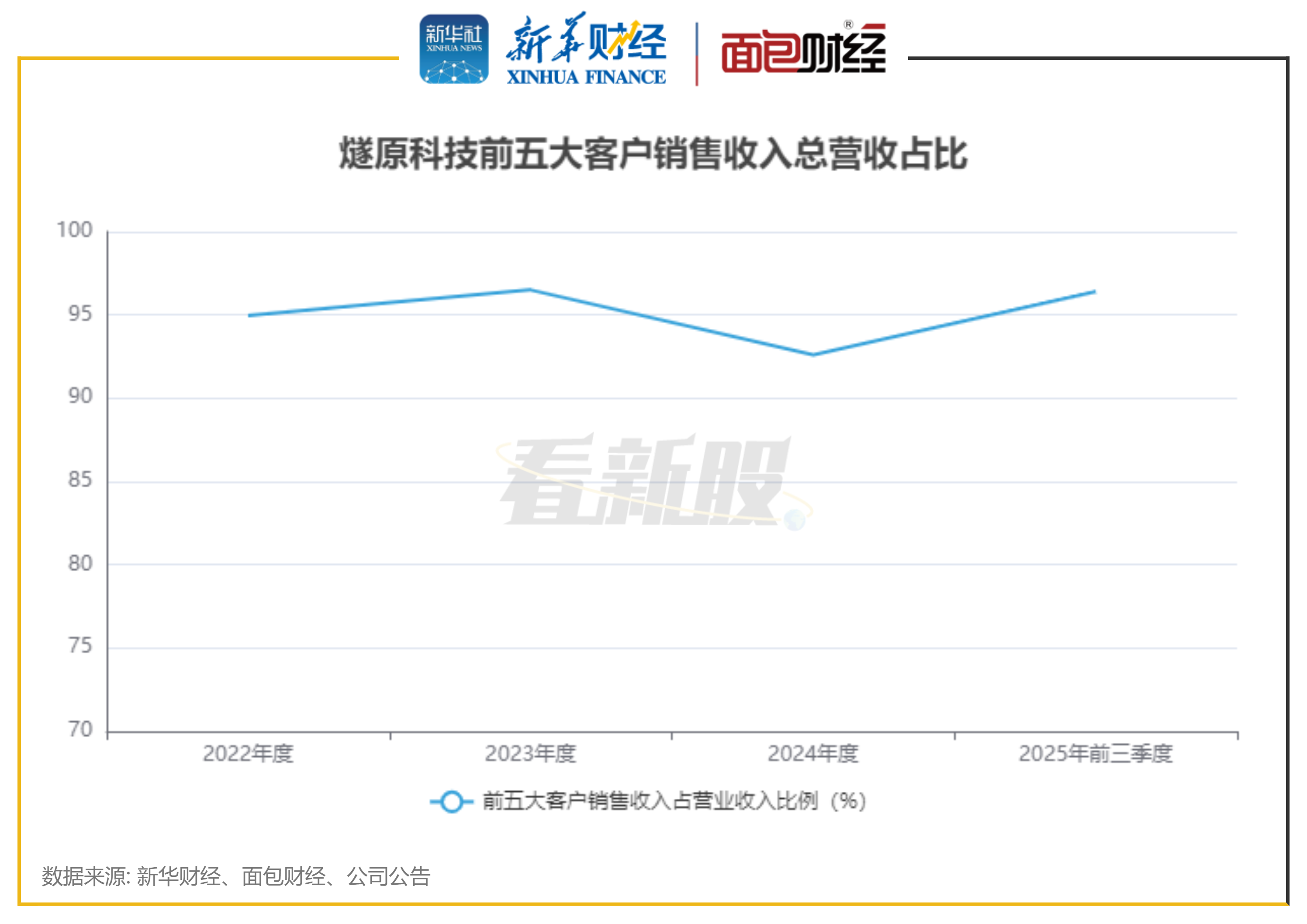 招股书显示,目前燧原科技的客户集中度及关联交易占比较高。2022年至2025年前三季度,公司对前五大客户的销售金额占当期营业收入的比例分别为94.97%、96.50%、92.60%和96.41%。