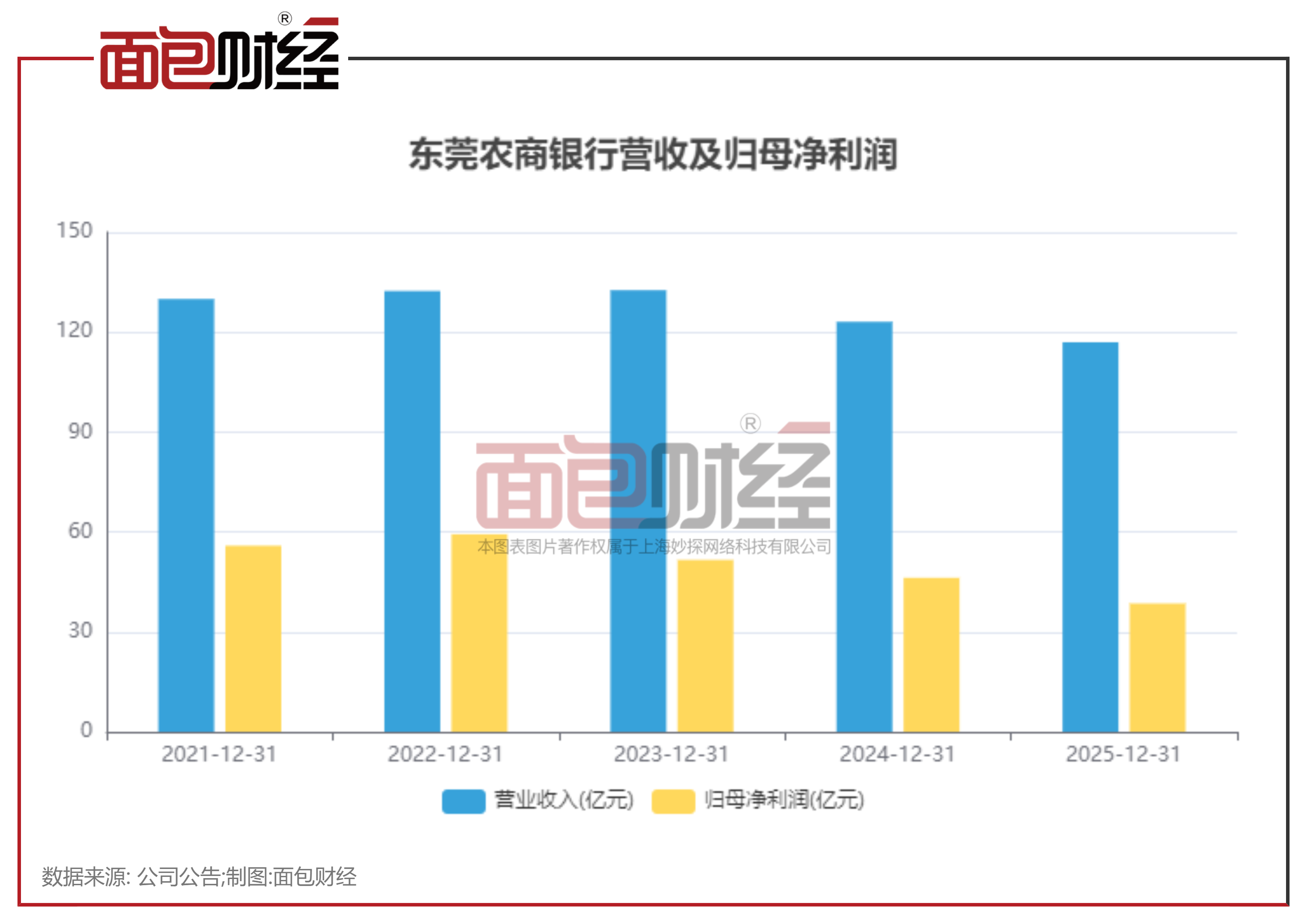 年报显示,东莞农商行2025年归母净利润38.54亿元,同比下滑16.67%。回溯2022年,该行归母利润59.32亿元,当前净利润水平仅为2022年的65%。这也是该行自2023年换帅以来的第三年净利润下降。
