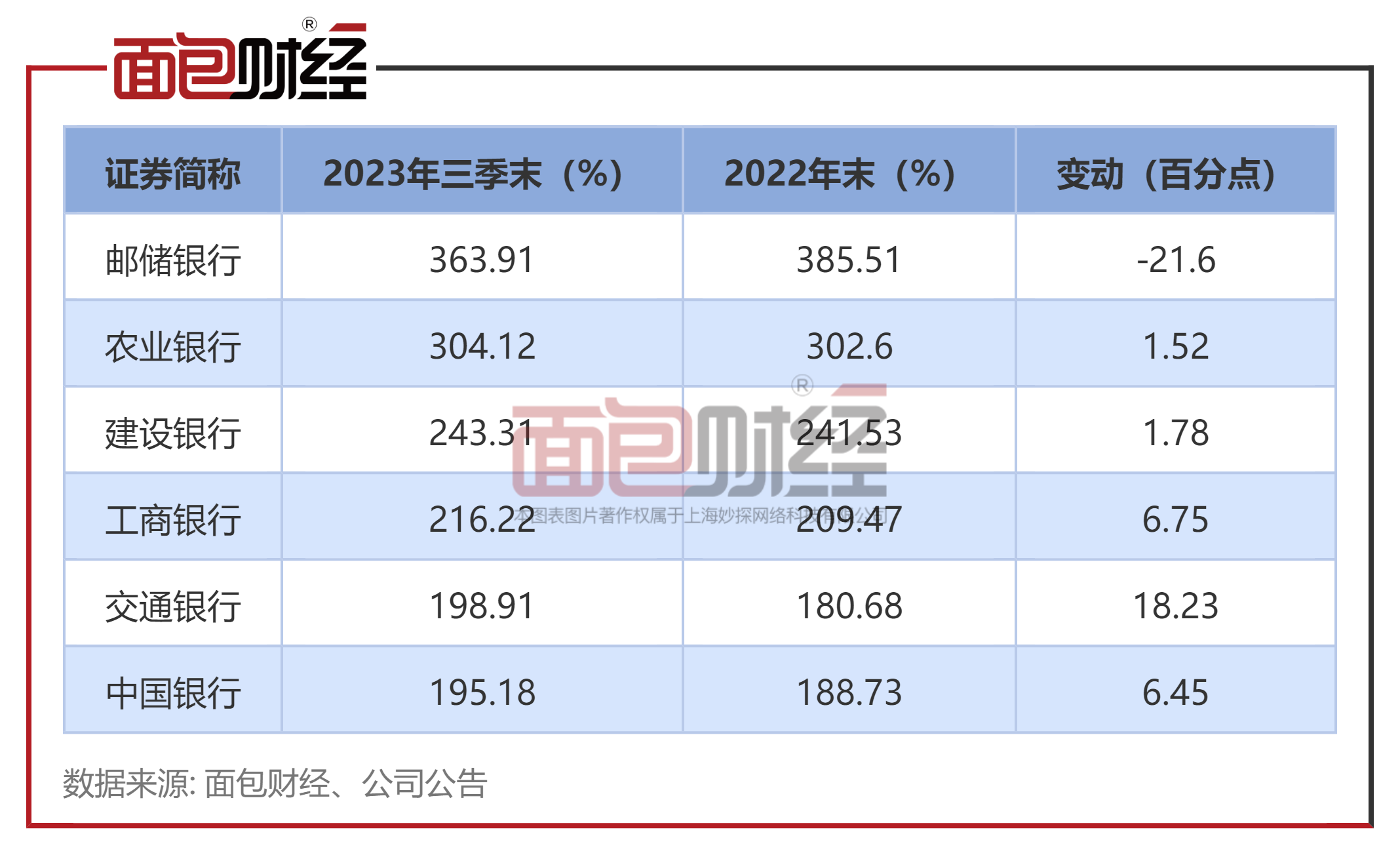 拨备覆盖率:中国银行、交通银行偏低,邮储银行下降