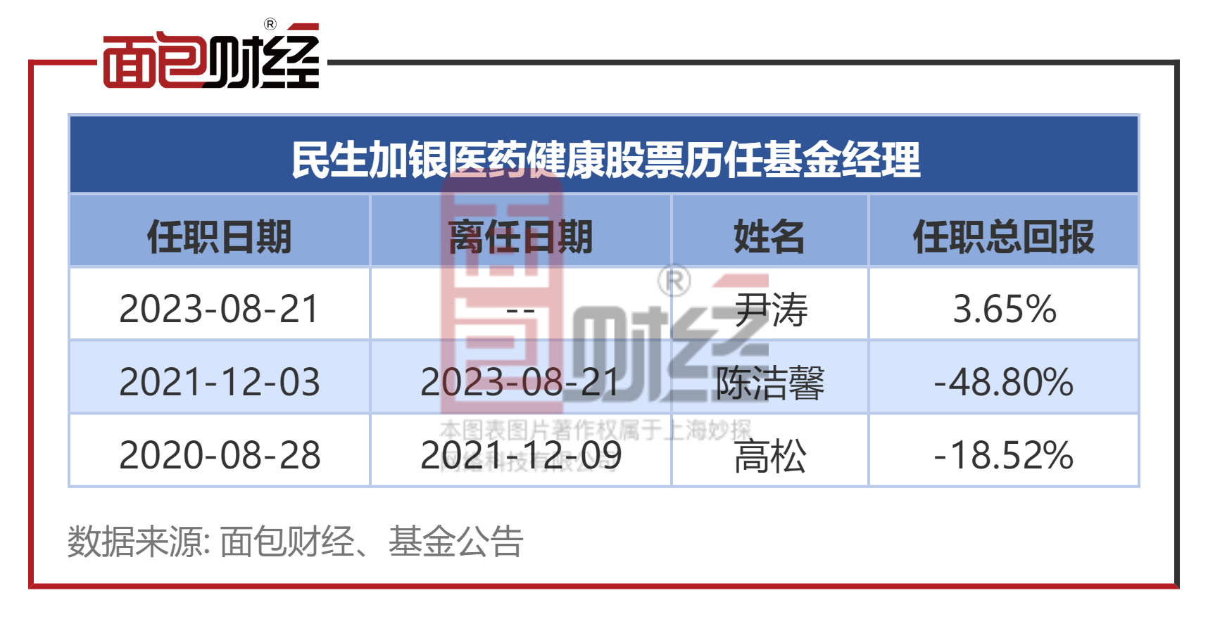 伴随业绩走弱,该基金多次更换基金经理。最新的基金经理为尹涛,于2023年8月开始任职。资料显示,尹涛2017年5月加入民生加银基金,现任专户理财二部总监助理、权益资产条线投资决策委员会成员、投资经理兼基金经理。