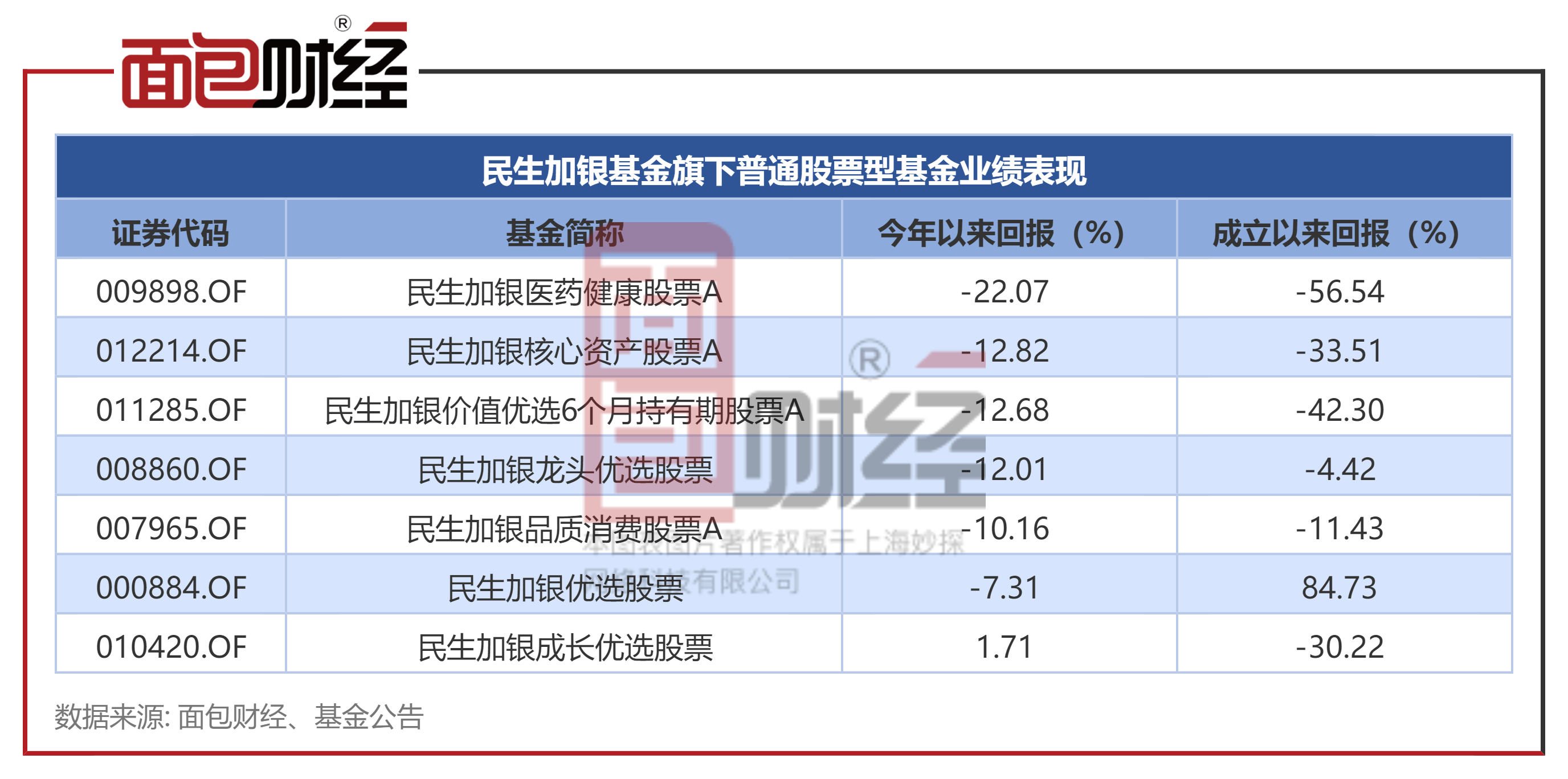 面包财经梳理公开数据发现,民生加银基金旗下普通股票型基金主要有7只(初始基金口径),合计规模约52.07亿元。