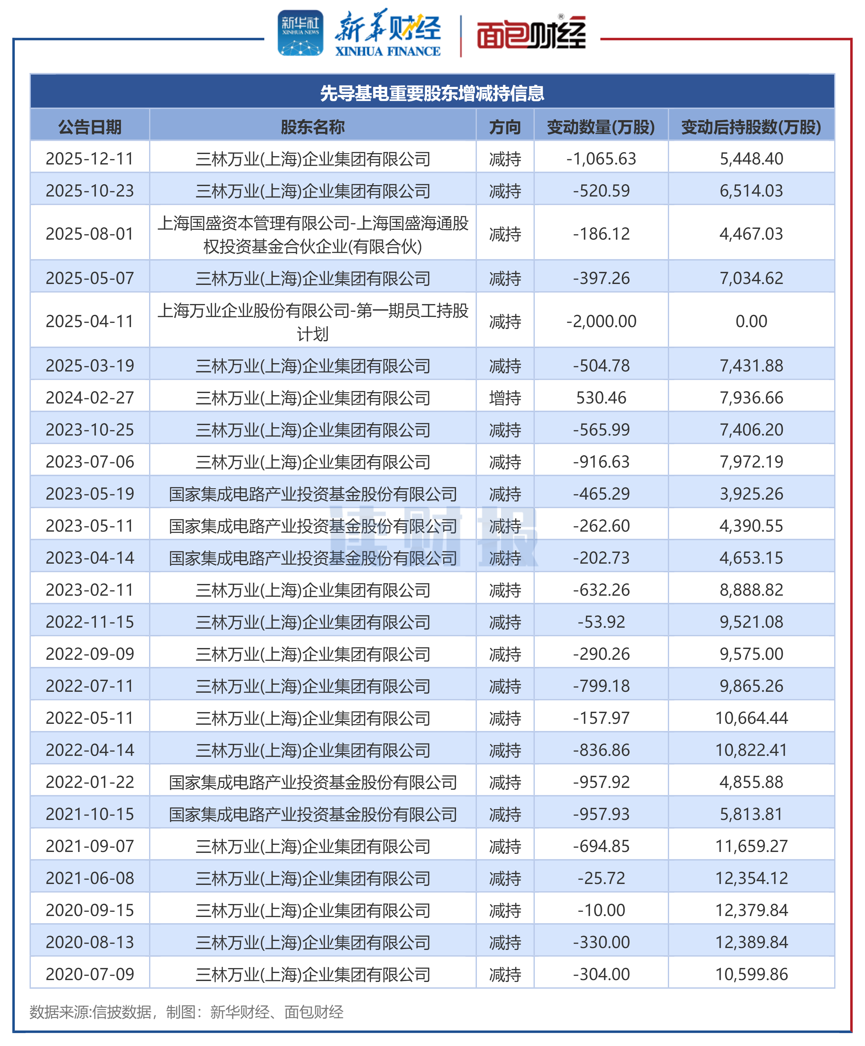 自2020年,国家集成电路产业投资基金股份有限公司累计减持2846.47万股,三林万业(上海)企业集团有限公司(以下简称“三林万业”)净减持超过7500万股。