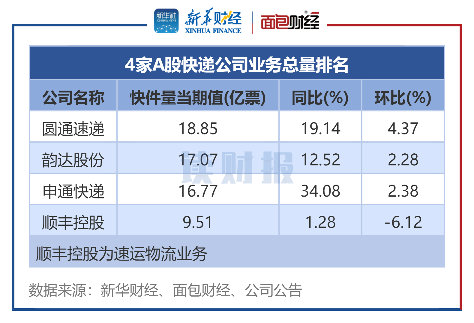 截至发稿时,共有4家A股上市快递公司披露10月份主要经营指标。