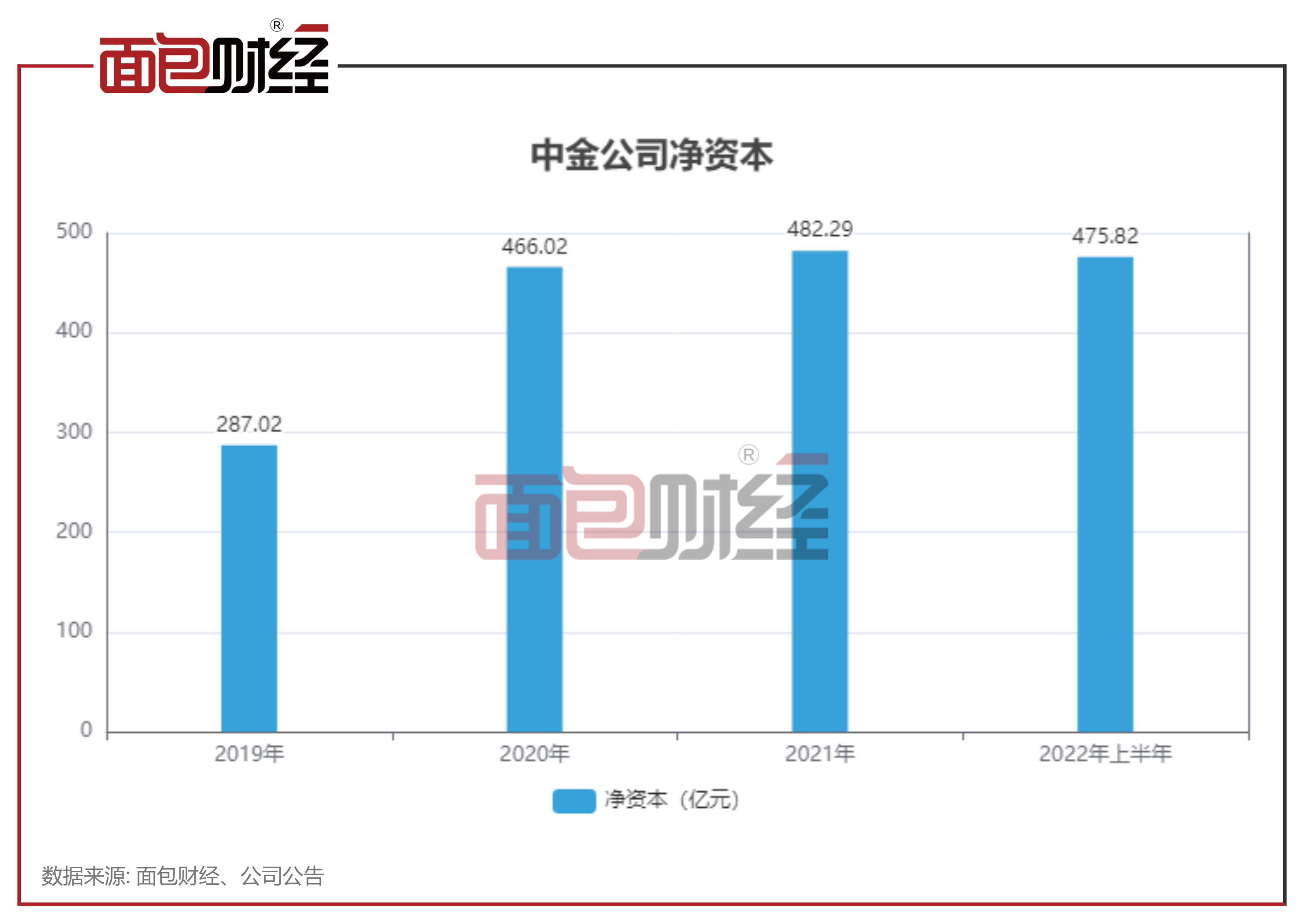 财报显示,截至2022年6月末,中金公司净资本规模为475.82亿元,较2021年末下降1.34%。