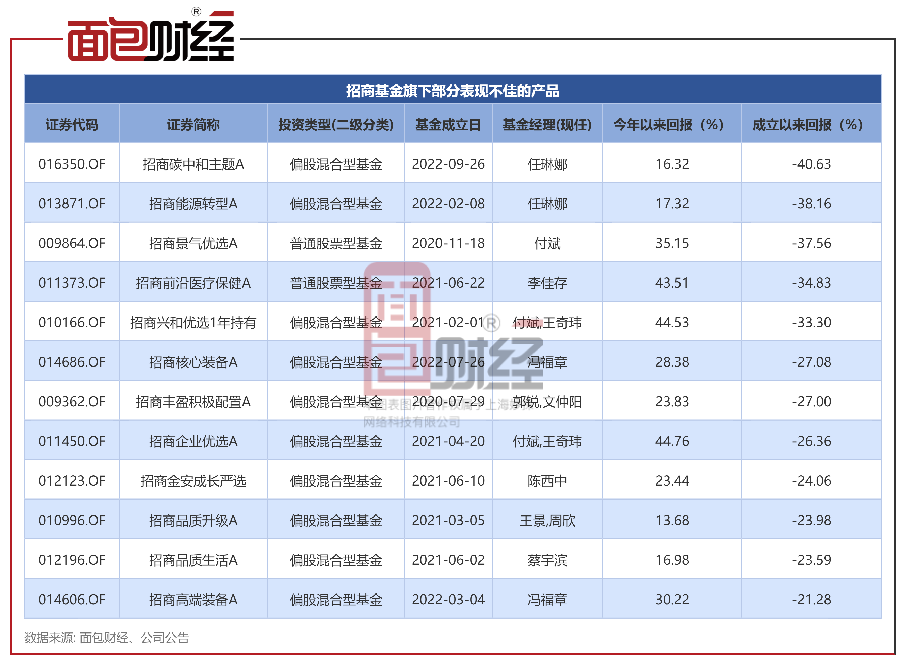 根据不完全统计,截至2025年10月24日(下同),招商基金在管的12只公募产品(初始基金口径,下同)成立以来净值累计下跌超过20%。