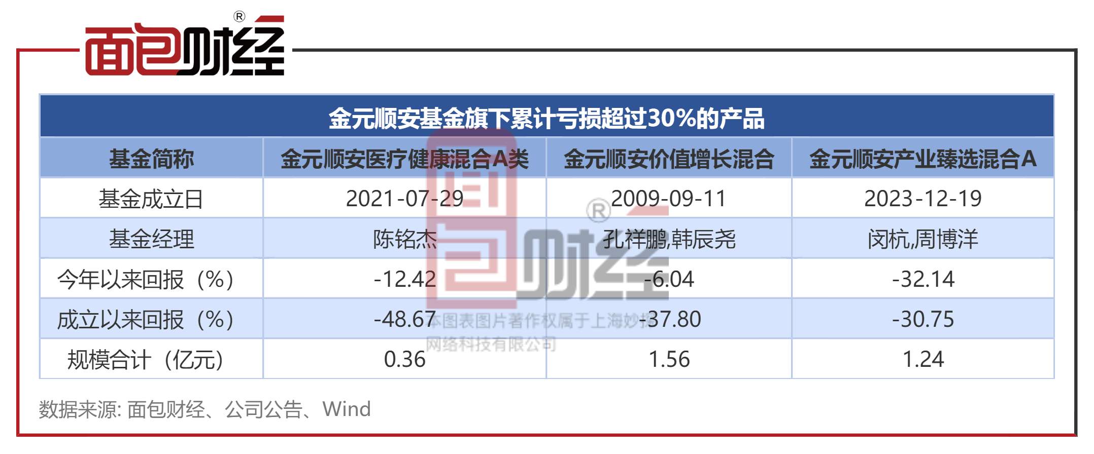 面包财经梳理发现,金元顺安基金旗下金元顺安医疗健康混合A类、金元顺安价值增长混合、金元顺安产业臻选混合A等产品成立以来净值累计下跌超过30%,投资者权益深度受损。