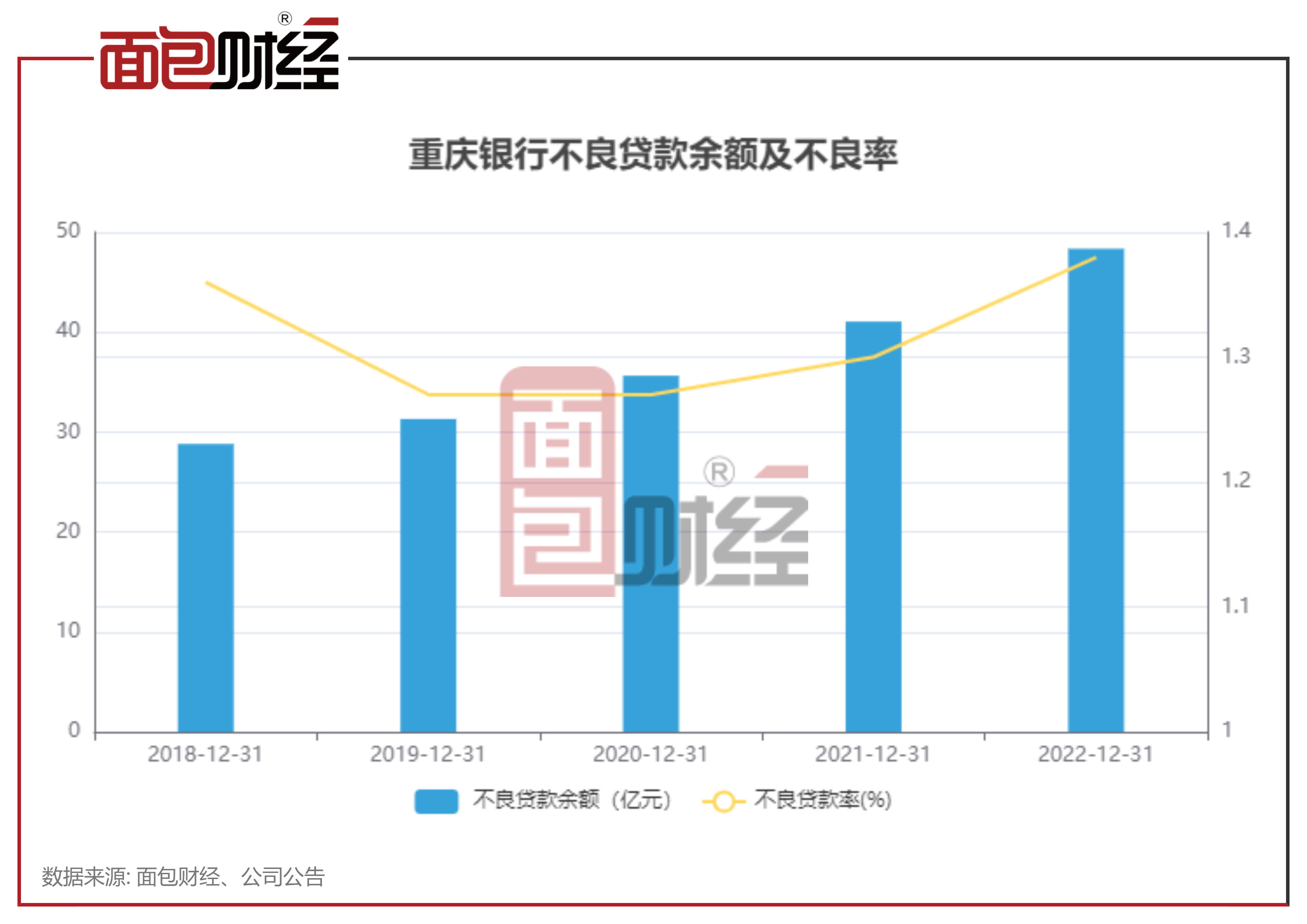 2022年财报显示,重庆银行的不良贷款余额及不良贷款率均有上升。