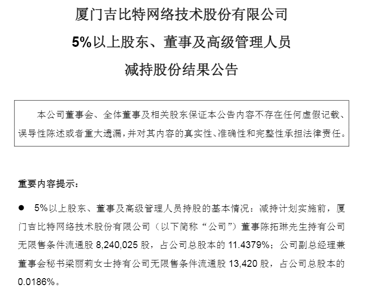 目前,陈拓琳、梁丽莉均已完成减持,分别减持153,800股、3,300股。