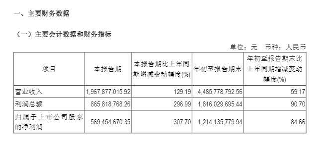 第三季度,公司营收、归母净利润分别同比增长129.19%、307.7%,业绩呈加速增长趋势。