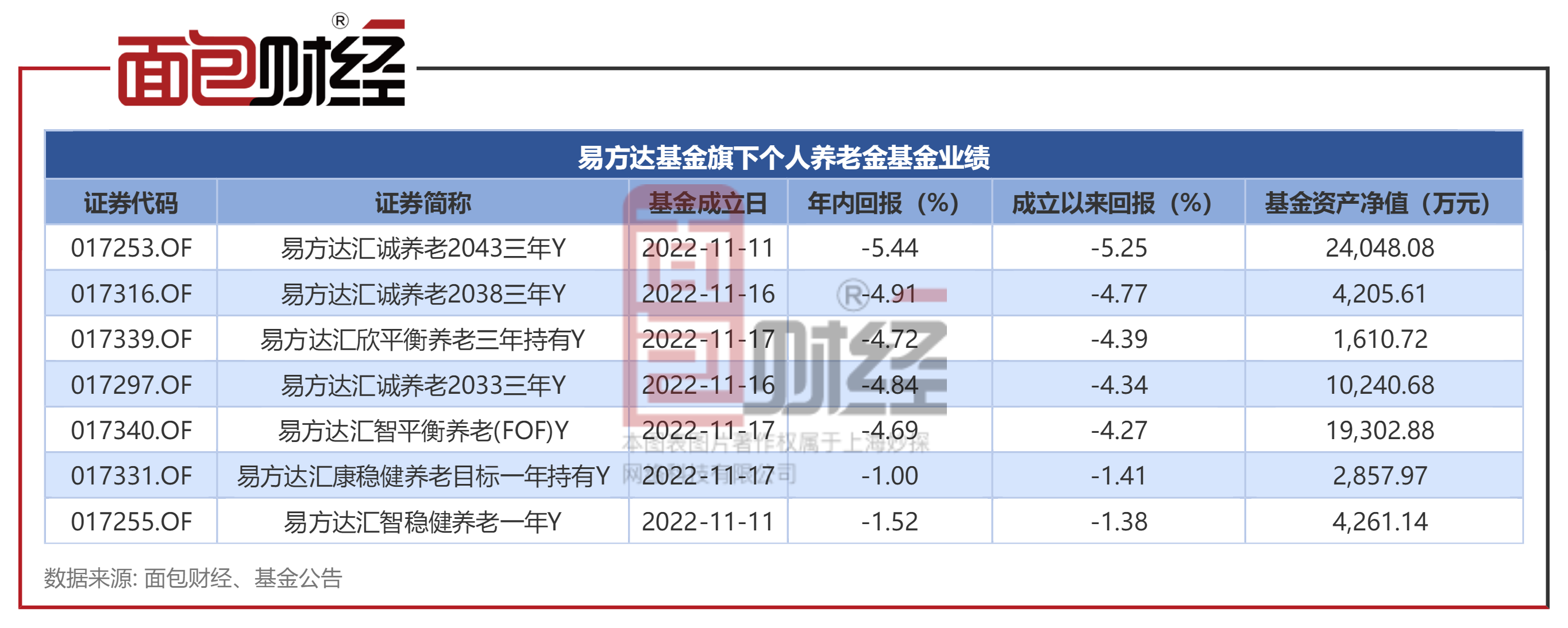 然而,易方达基金旗下7只个人养老金基金成立以来全员亏损,净值平均亏损3.69%。
