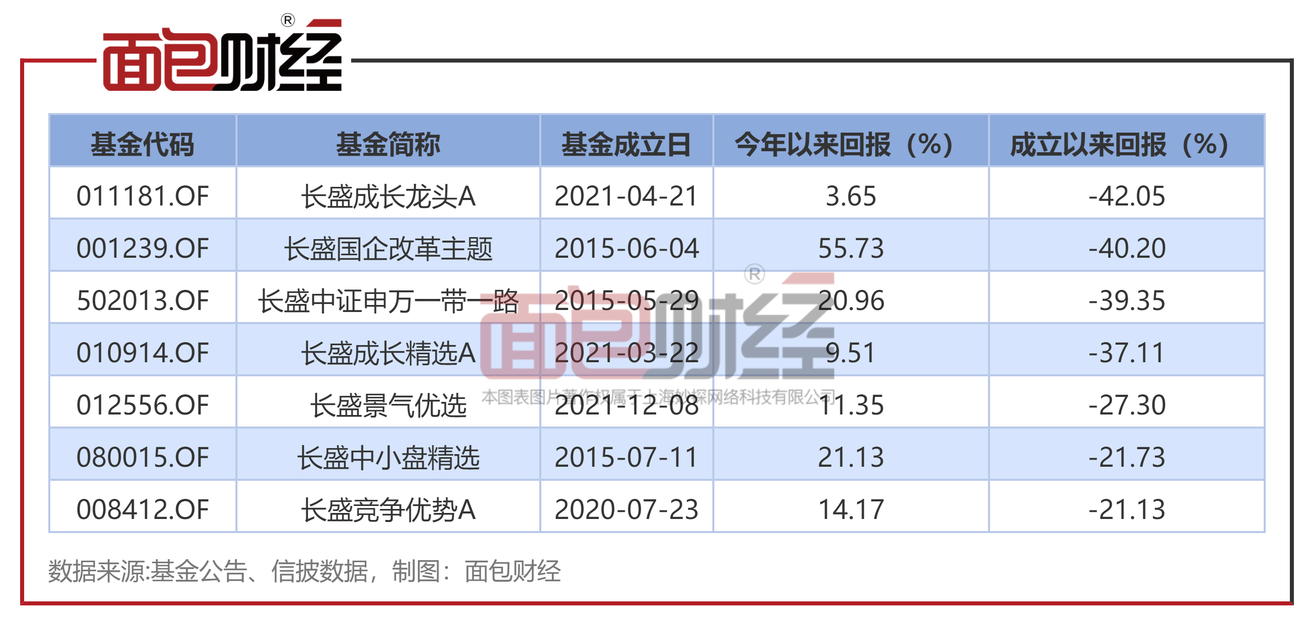 面包财经梳理公开资料显示,长盛基金在管的7只产品成立以来净值累计下跌超过20%,使投资者利益深度受损。