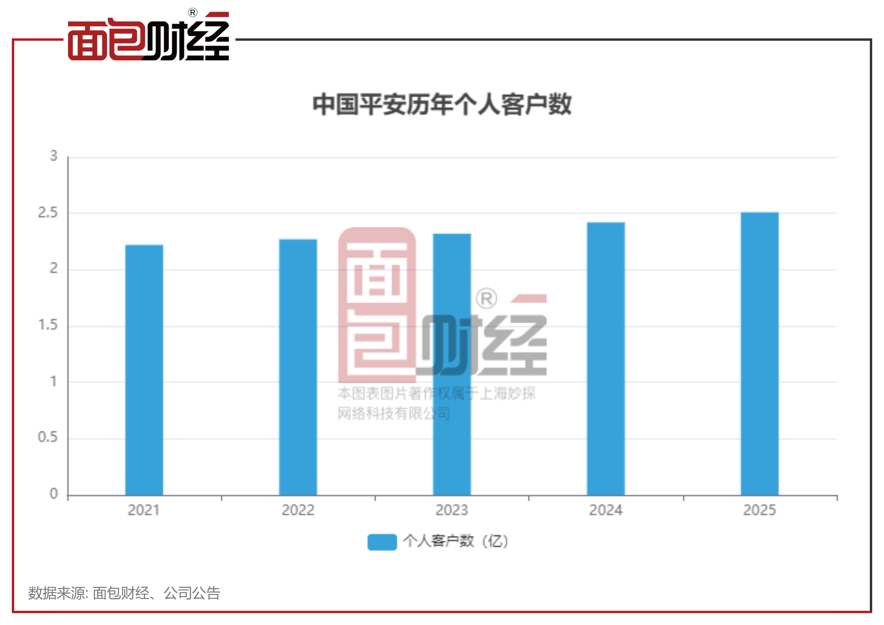 根据中国平安2025年财报披露,公司个人客户数达2.51亿,较年初增长3.5%;线上月均活跃客户数约9,000万,领先同业 ;持有集团内3类及以上产品的客户留存率99%。