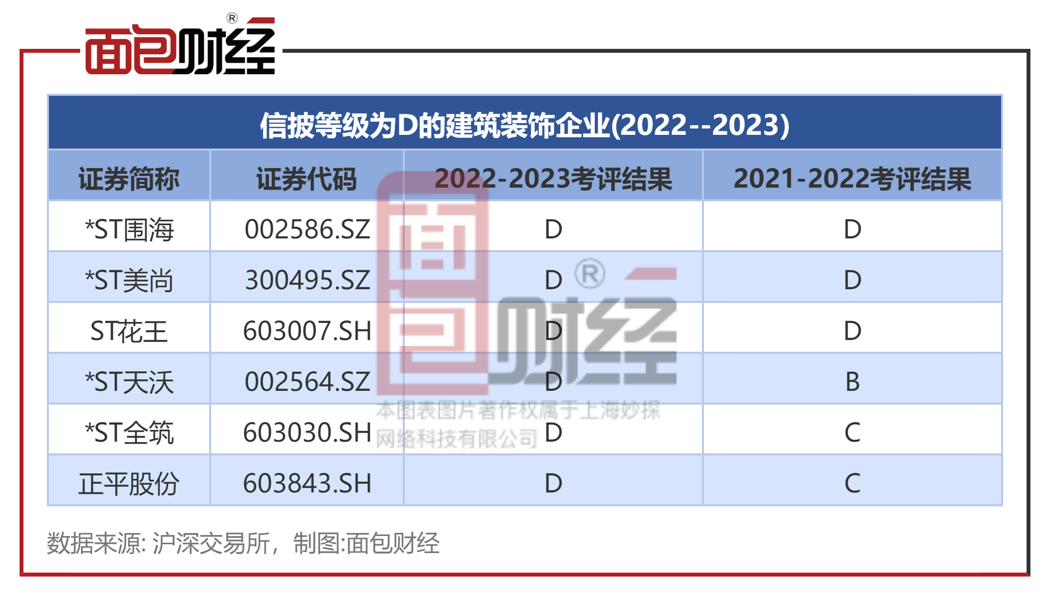 面包财经根据交易所发布的考评结果及相关规章制度,透视相关行业、板块和公司的信披状况。本篇为建筑装饰行业篇。