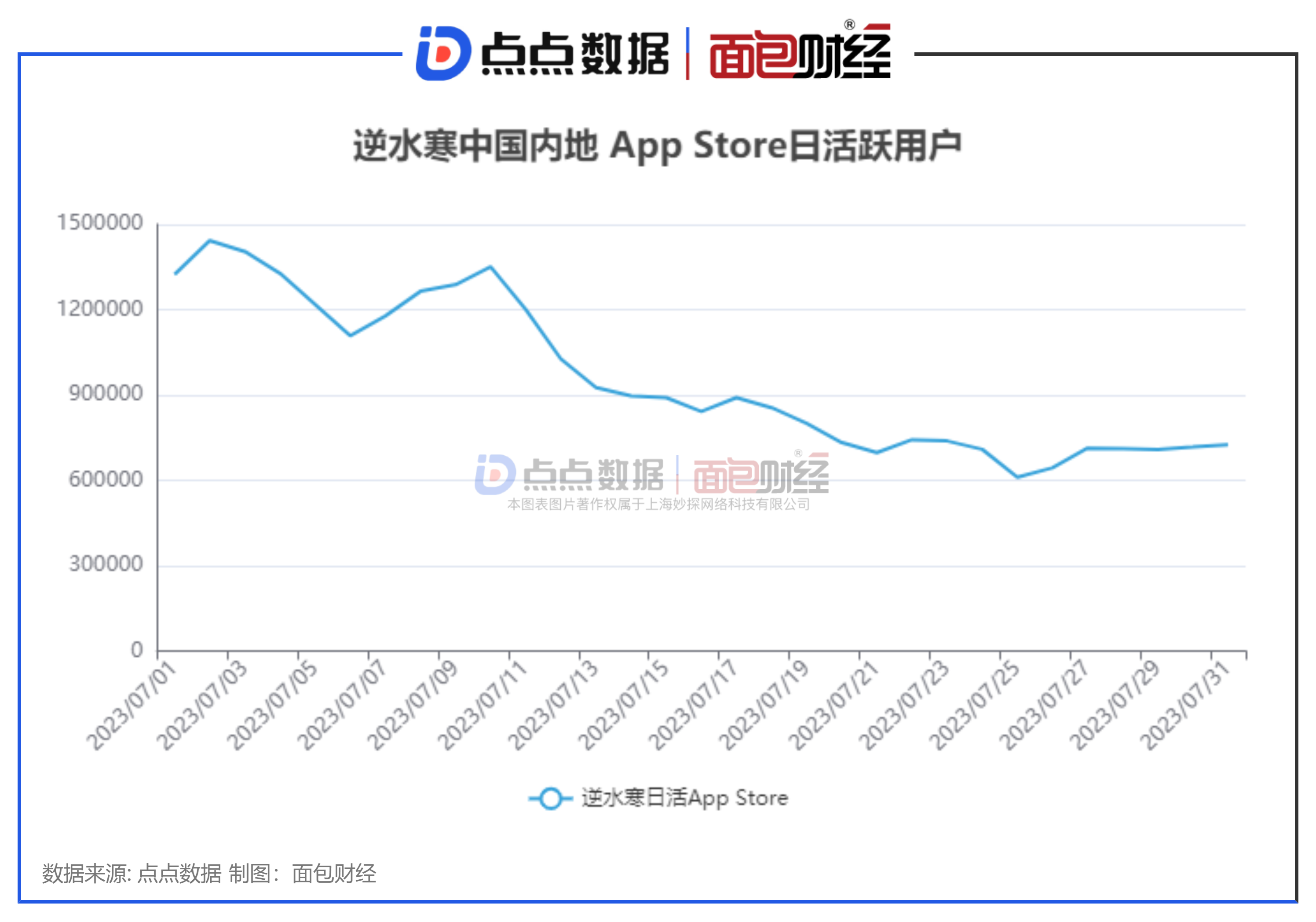 然而,值得一提的是,7月以来,《逆水寒》在中国内地App Store的日活跃用户整体呈下降态势。点点数据显示,7月31日,该游戏的中国内地App Store的日活跃用户约为73万人,较峰值下降近50%,但仍然维持高位。