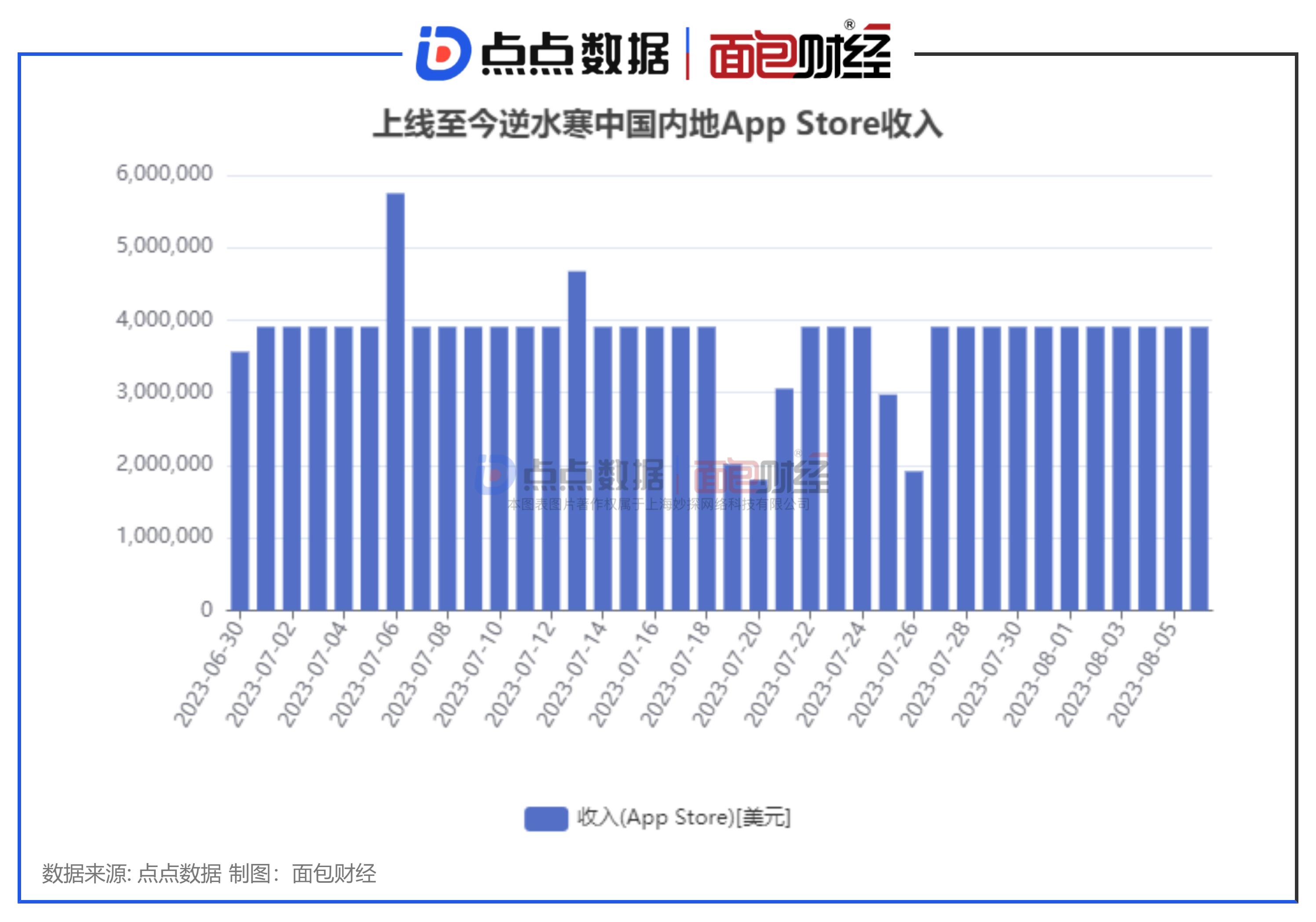 具体来看,7月6日,《逆水寒》中国内地App Store的净收入超过4100万人民币,是自上线以来收入最高的一天。