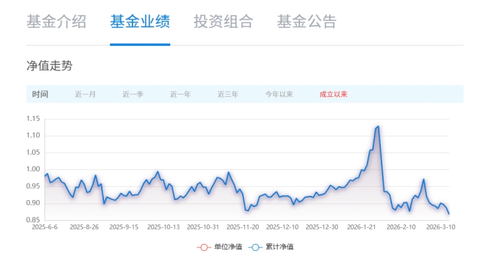 业绩表现上,申万菱信行业精选A自2025年6月成立后便陷入亏损。值得关注的是,基金在2026年开年行情中净值高涨,却在一个月内再次破净重回亏损。