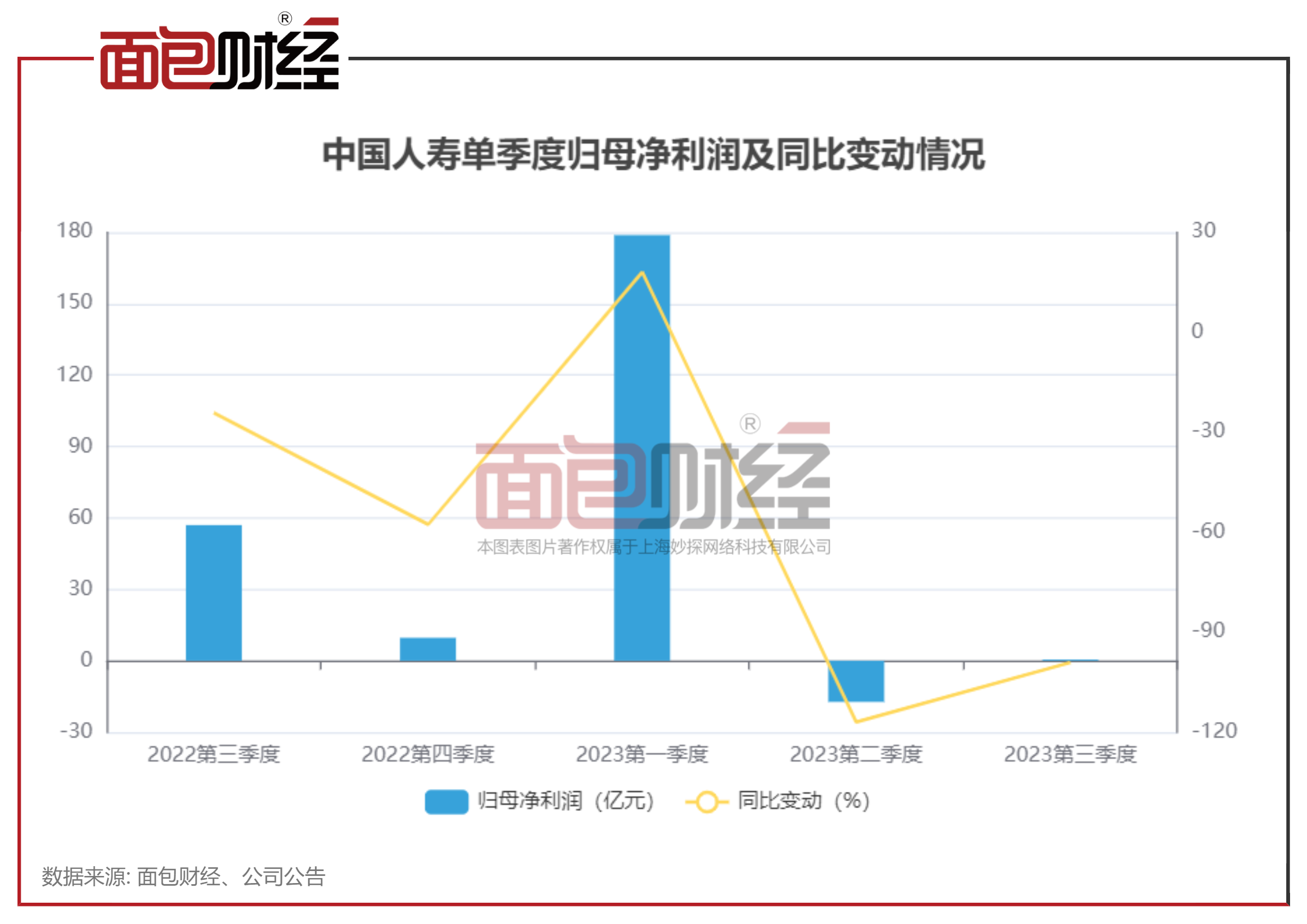 梳理历史数据发现,今年以来,中国人寿归母净利润波动较大,且已连续两个季度同比大幅下降。