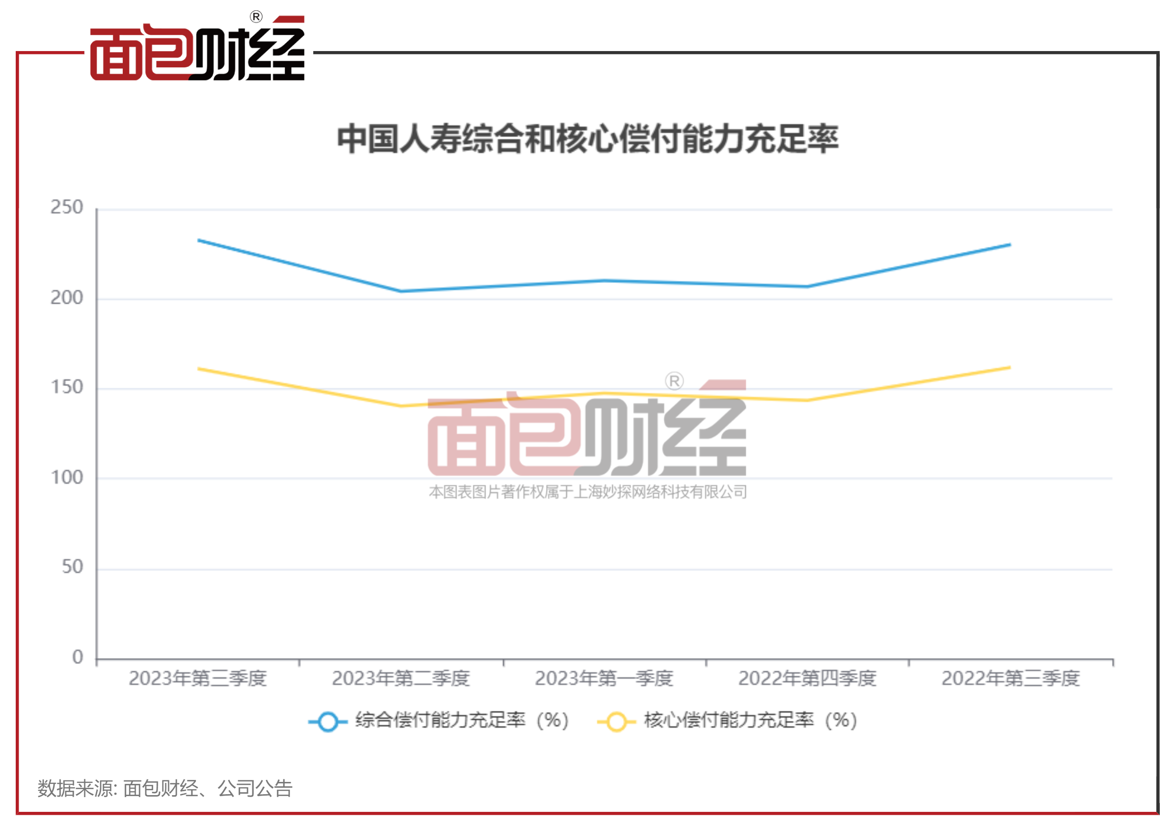 截至 2023年9月31日,中国人寿综合偿付能力充足率为232.68%,较二季度末增长28.45个百分点;核心偿付能力充足率为161.25%,较二季度末增长20.82个百分点。