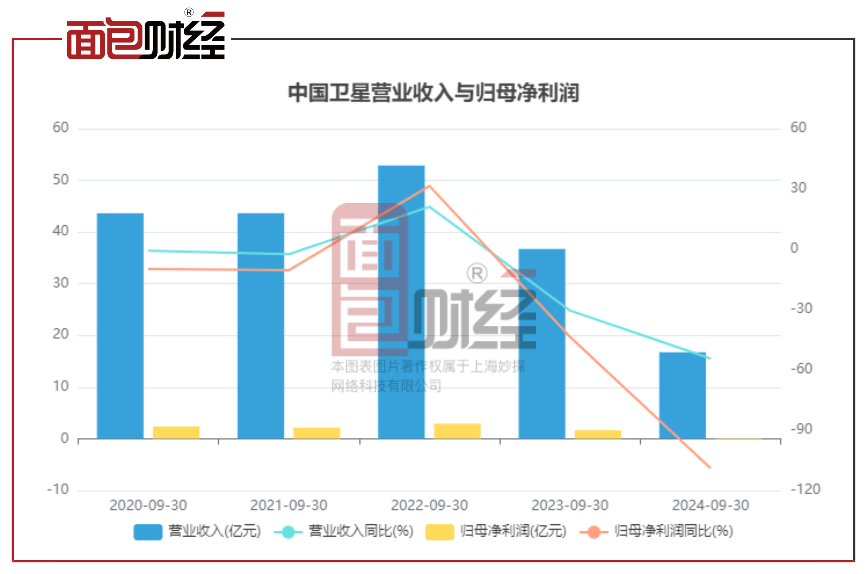 【面包财经】中国卫星三季报:营收同比下降超五成,归母净利润由盈转亏