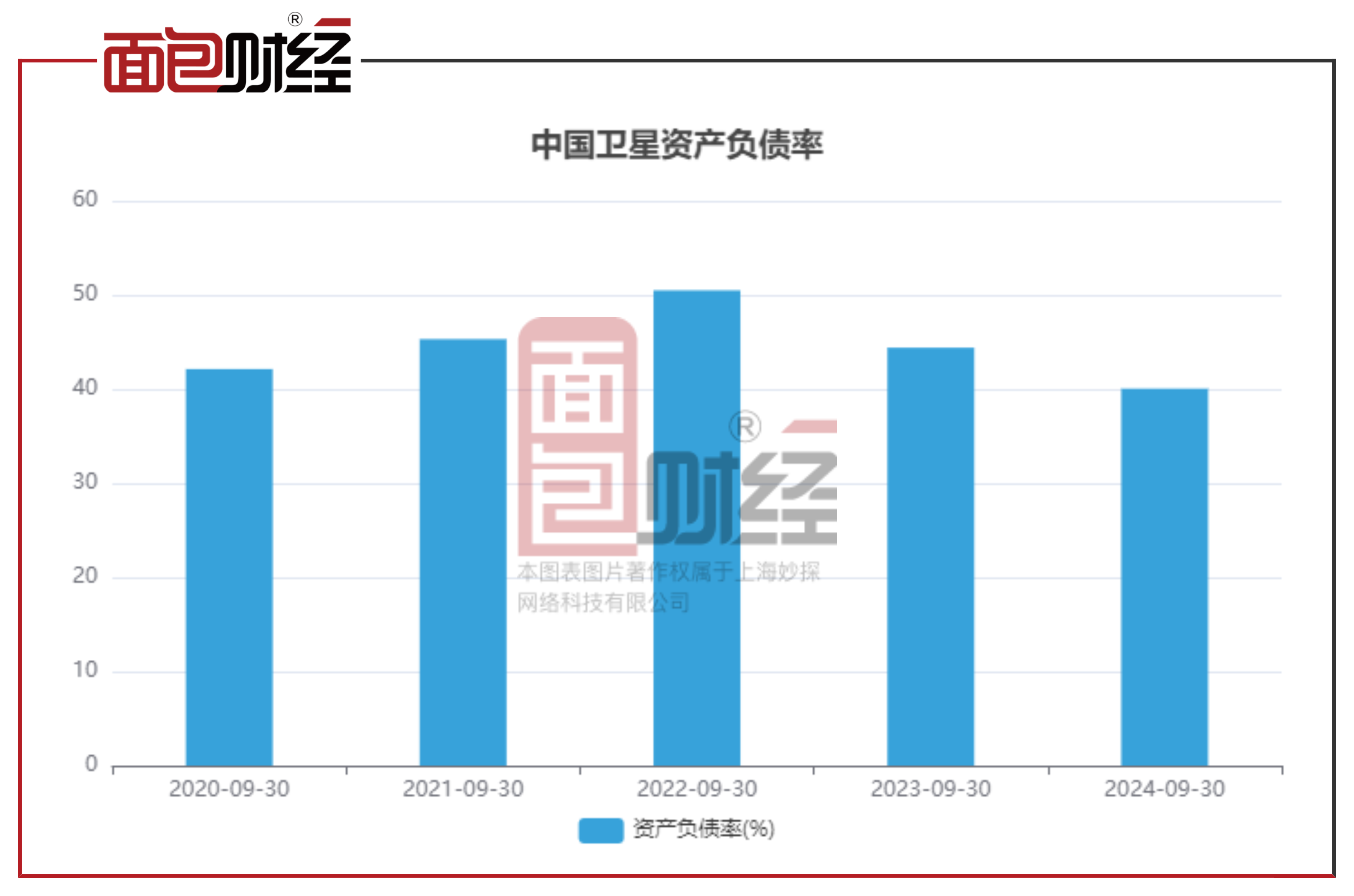 中国卫星资产负债率为40.05%,去年同期值为44.40%,同比减少4.35个百分点。