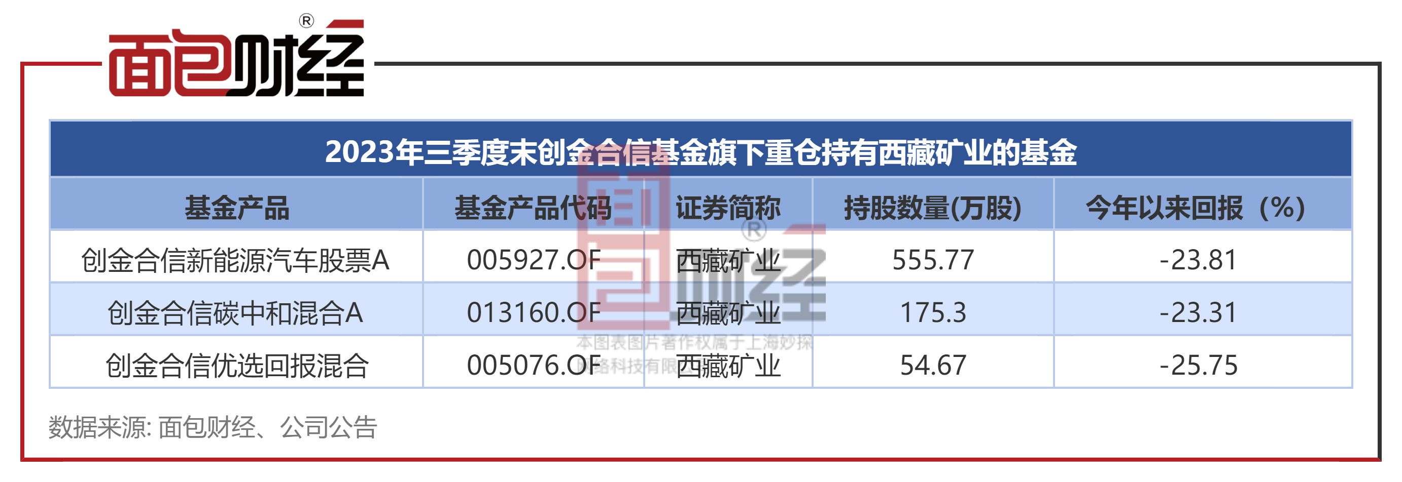 在上市公司存在违规事项、业绩承压的情况下,创金合信基金旗下3只产品三季度末仍重仓持股西藏矿业,合理合规性存疑。