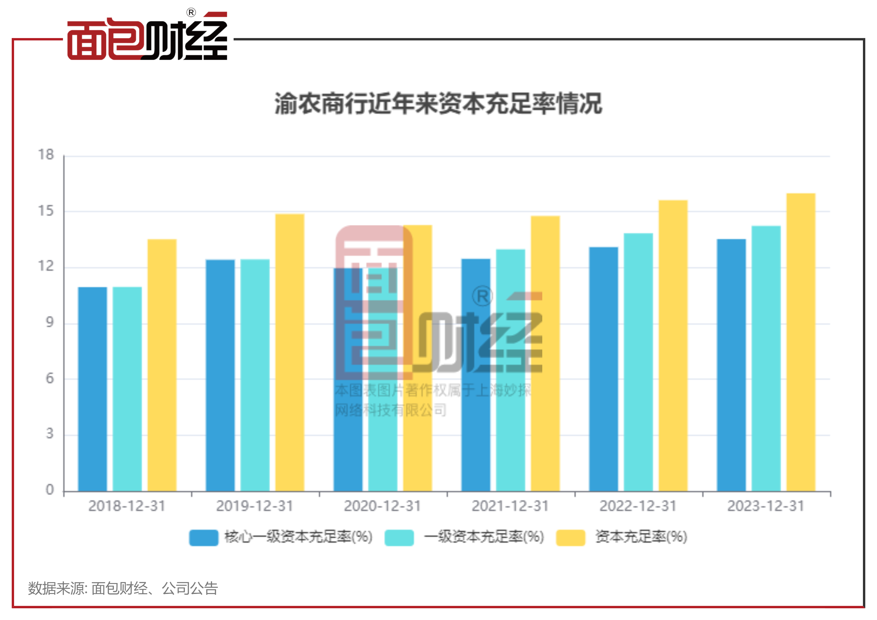 截至2023年末,渝农商行的资本充足率指标较上年末均有所提升。