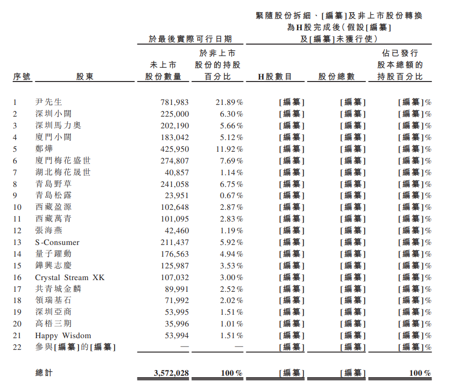 截至最后实际可行日期,创始人尹阔通过直接及间接方式合计控制公司约38.98%的投票权。机构投资者中,厦门梅花盛世、青岛野草、S -Consumer、量子跃动持股较多。其中,量子跃动由抖音有限公司全资拥有,持有小阔科技4.94%的股份。