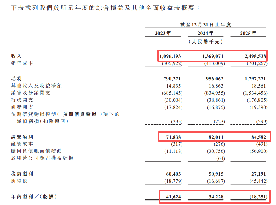 数据显示,2023年至2025年,小阔科技营收分别为10.96亿元、13.69亿元、24.99亿元,但同期的经营利润分别为0.72亿元、0.82亿元、0.85亿元。若考虑到赎回负债账面值变动等因素的影响,小阔科技2023年至2025年的净利润分别为0.42亿元、0.34亿元、-0.18亿元,呈逐年下降趋势。