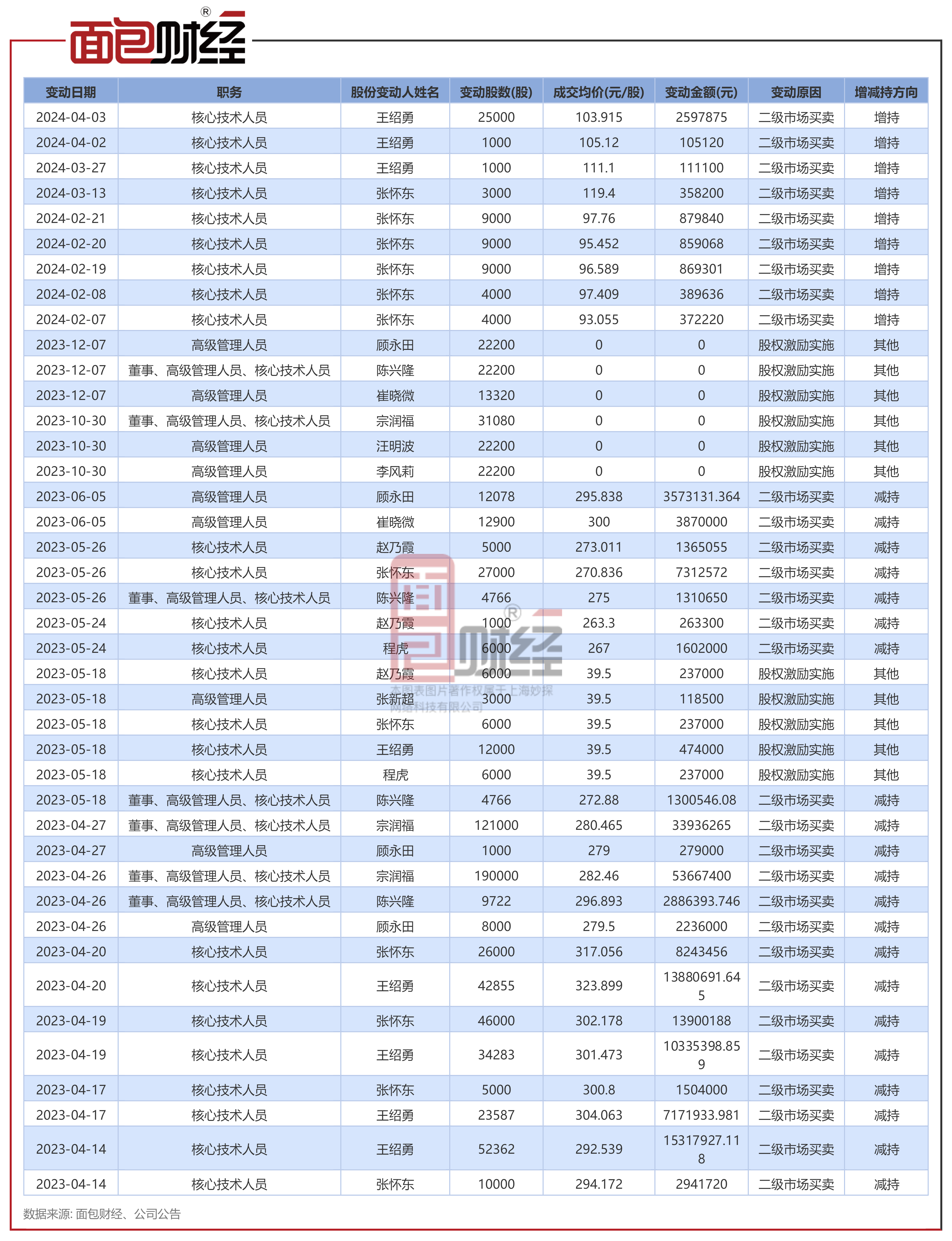 2024-04-03,芯源微(688037.SH)核心技术人员王绍勇通过二级市场买卖增持2.5万股 ,成交均价为103.92元/股 ,增持金额为259.79万元,变动后持股数为2.7万股。