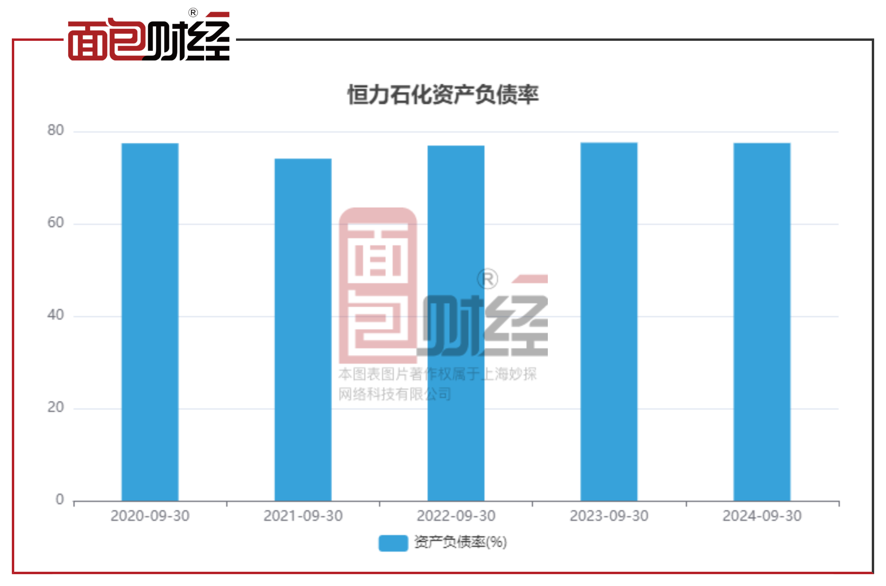 恒力石化资产负债率为77.48%,去年同期值为77.56%,同比减少0.08个百分点。