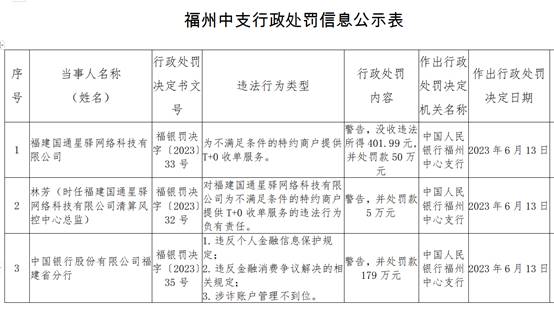 同时,时任福建国通星驿网络科技有限公司清算风控中心总监林芳因有负责被警告并处罚款5万元。