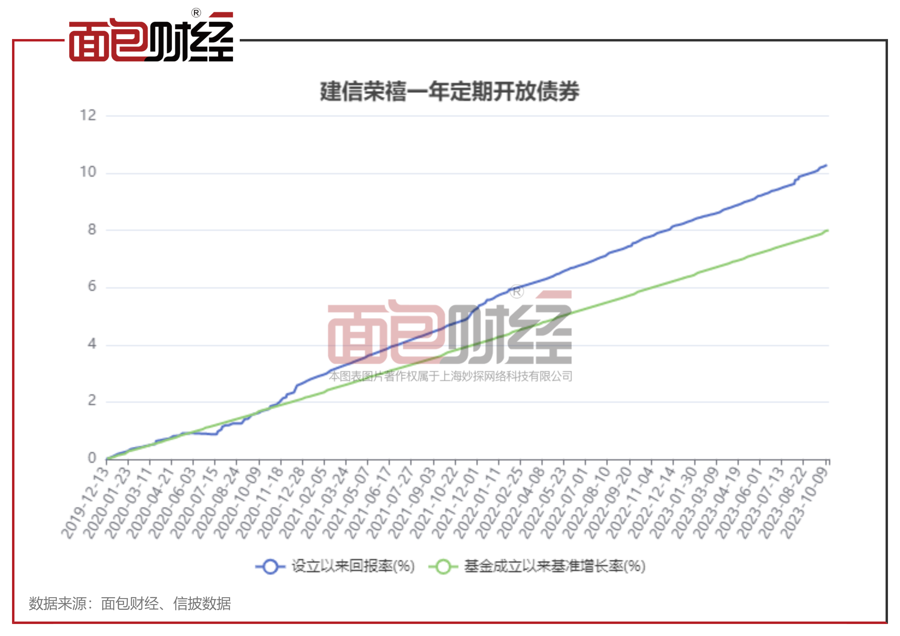 建信基金公开披露的数据显示,截至2023年10月13日,建信荣禧一年定期开放债券成立以来收益率为10.3%,跑赢业绩比较基准2个百分点。