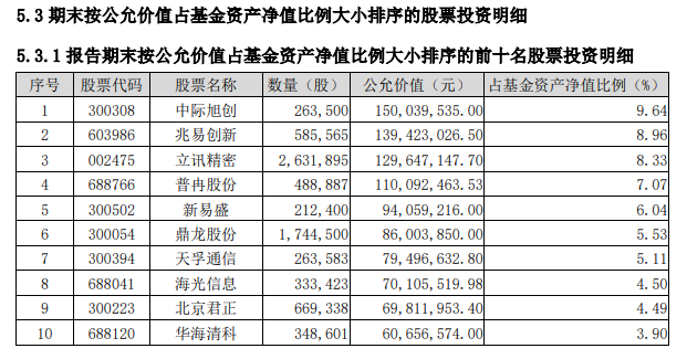 2026年一季报显示,嘉实前沿创新混合股票投资占基金总资产的比例为93.49%,基金重仓股包括中际旭创、兆易创新、立讯精密、普冉股份、新易盛等企业。