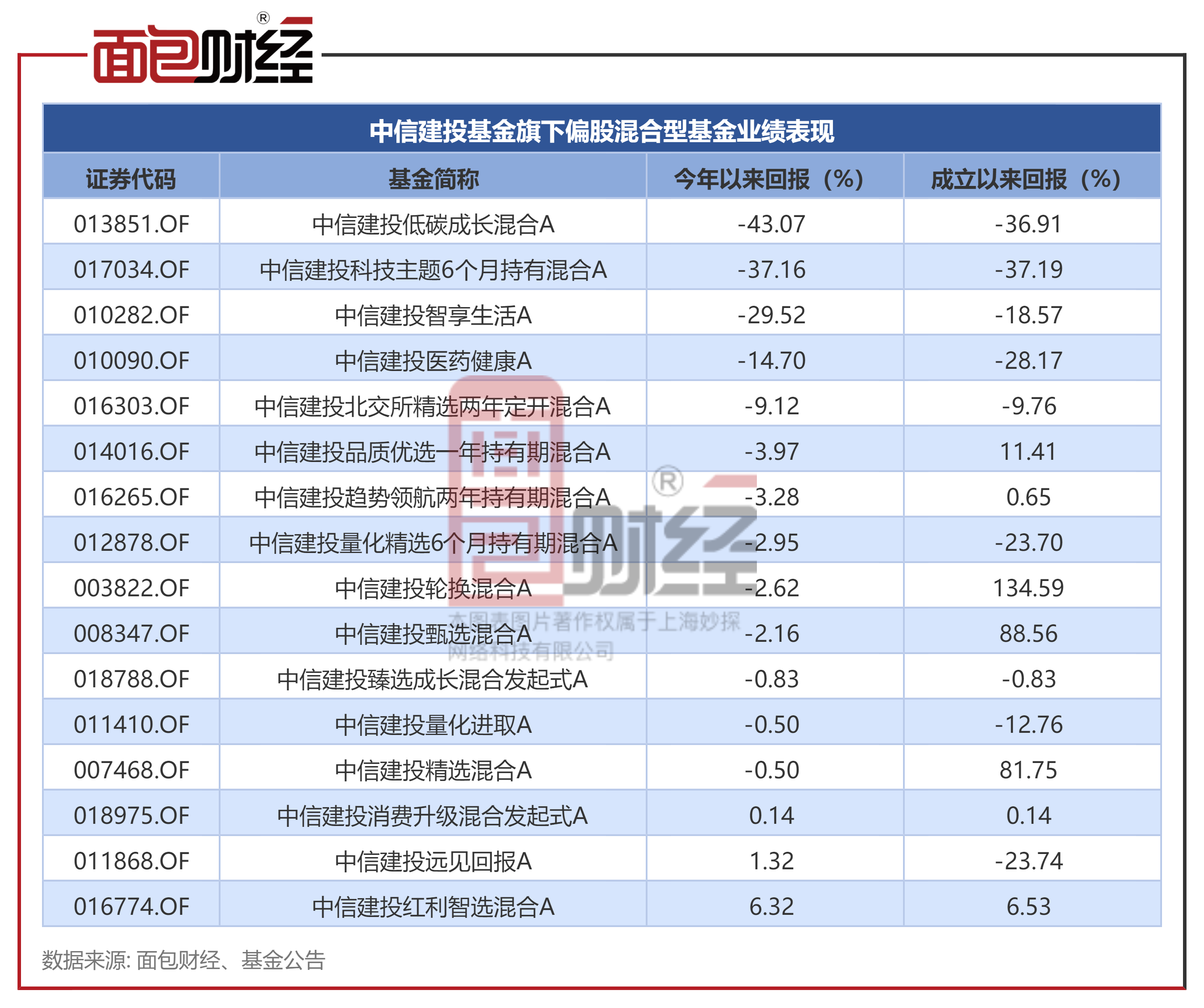 面包财经梳理公开资料发现,中信建投基金旗下偏股混合型基金主要有16只,超过半数产品累计收益率为负。