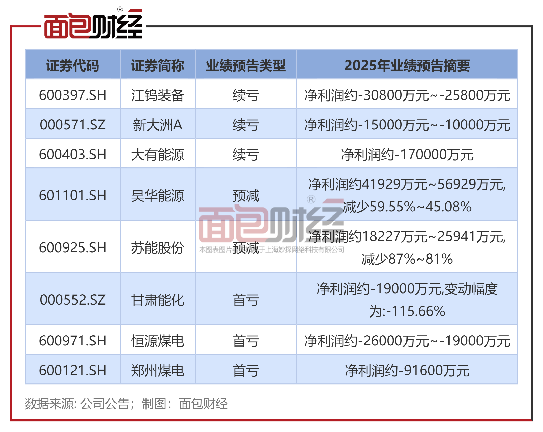 截至1月29日,以申万行业划分标准来看,动力煤行业有8家发布了2025年业绩预告,其中3家续亏,3家首亏,2家业绩预减。