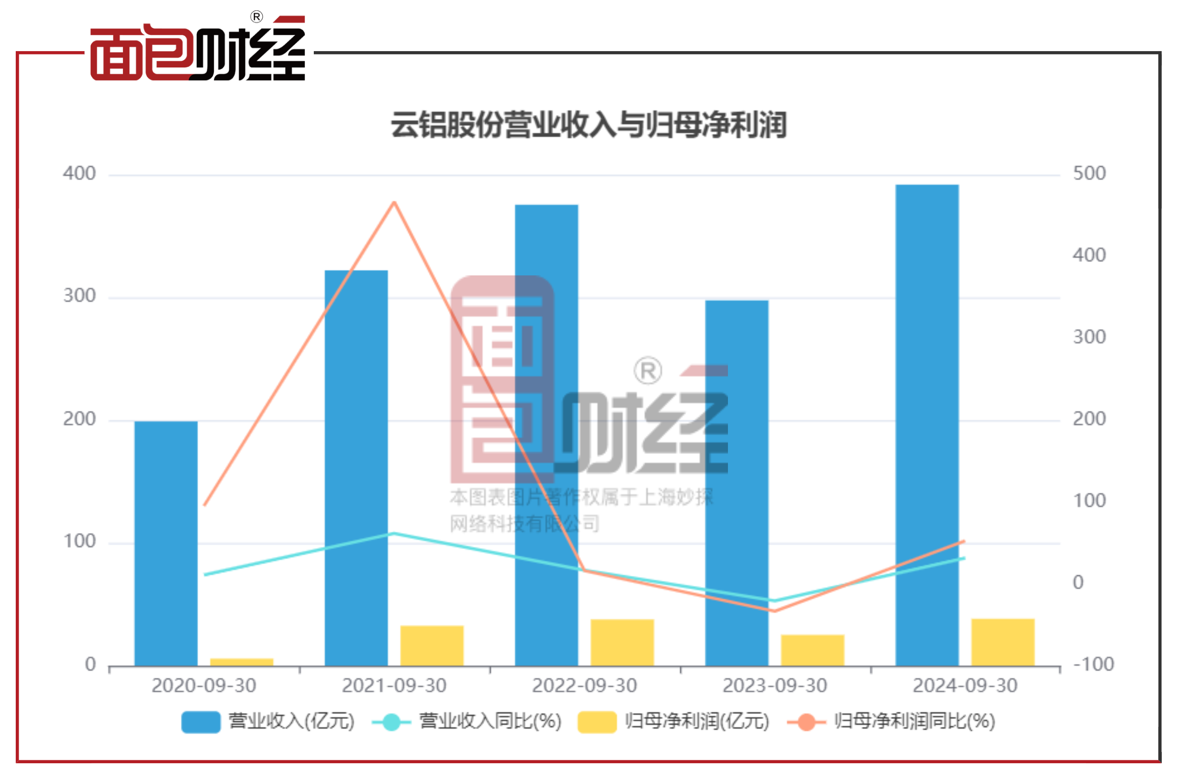 【面包财经】云铝股份三季报:归母净利润38.2亿元,同比上升52.49%