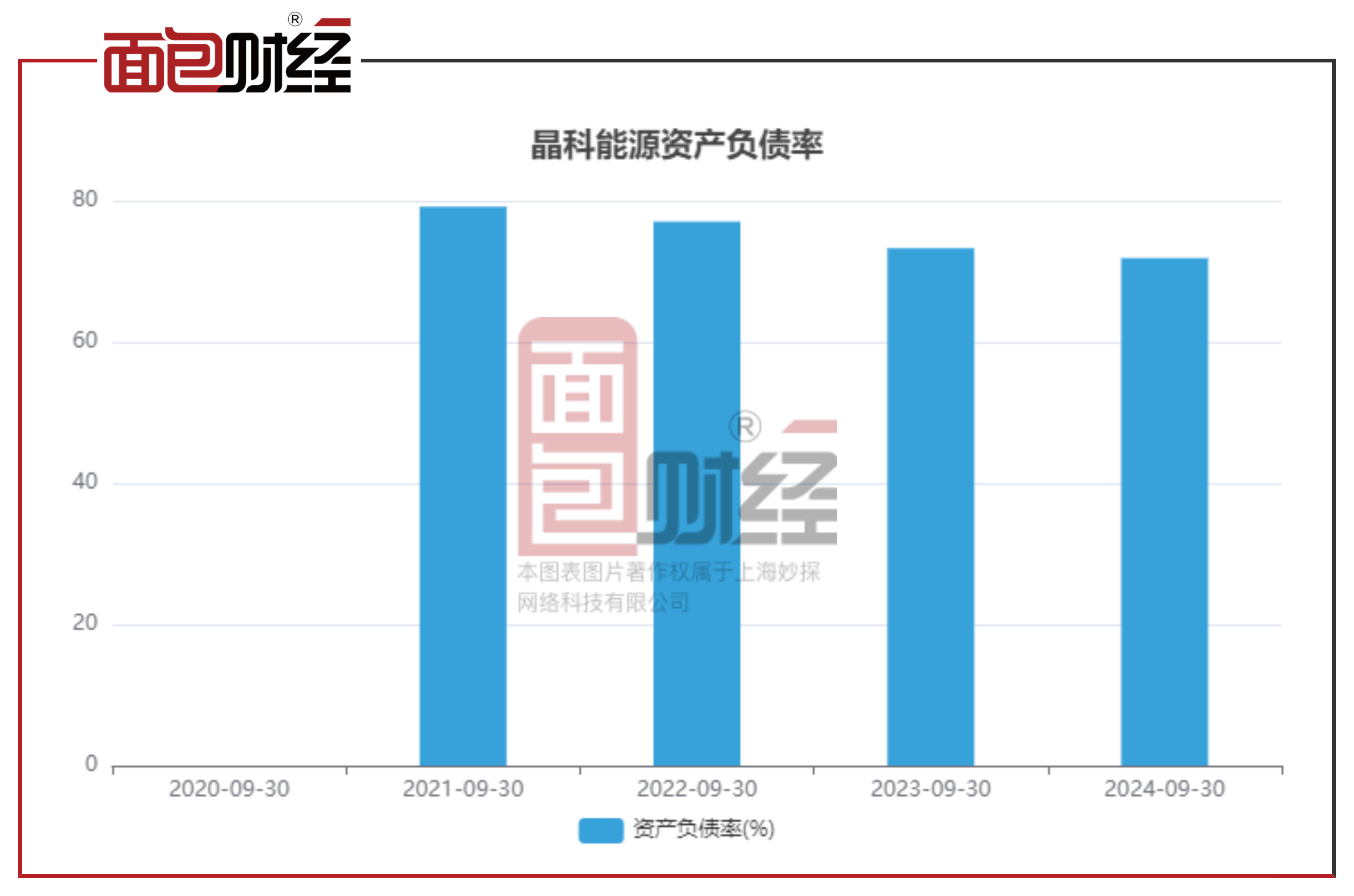 晶科能源资产负债率为71.89%,去年同期值为73.29%,同比减少1.41个百分点。