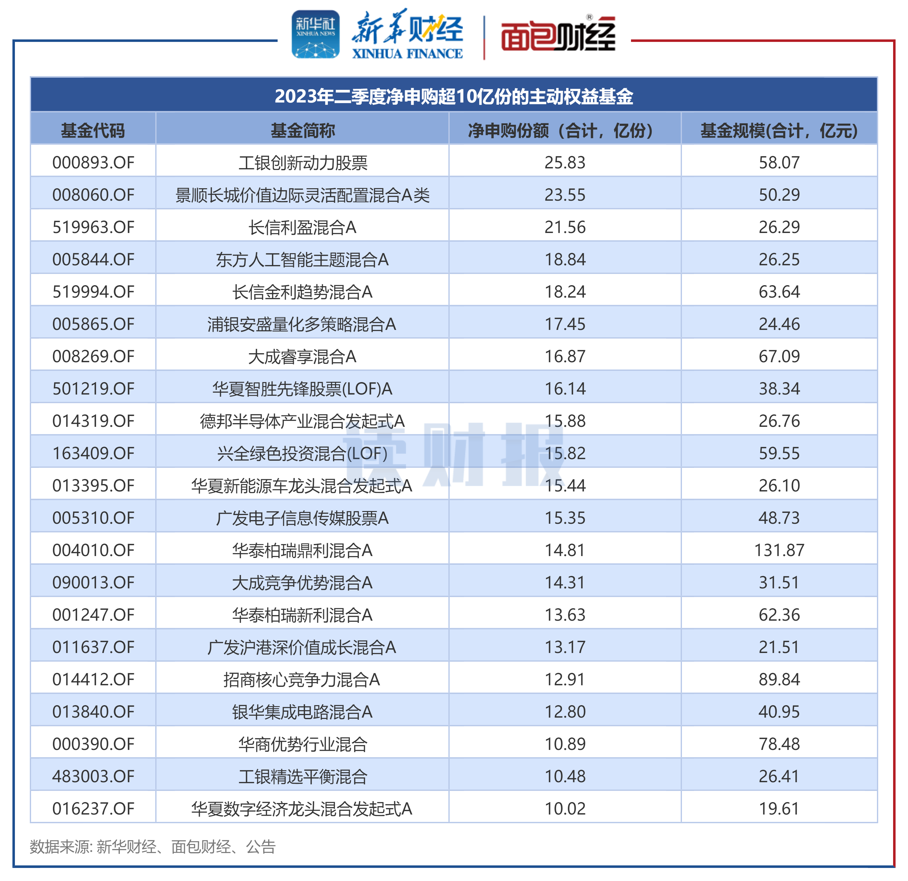 图3:2023年二季度净申购超10亿份的主动权益基金