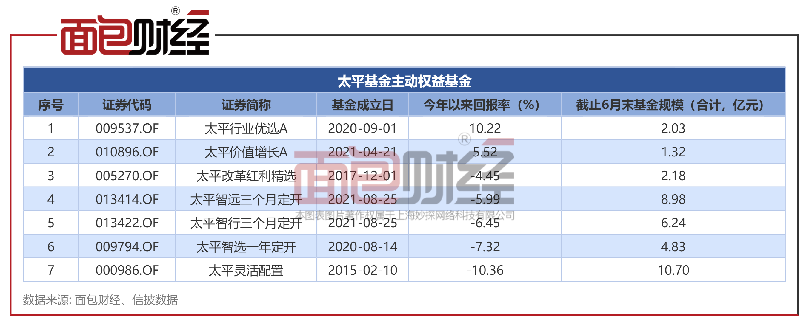 面包财经根据公开数据研究发现,太平基金旗下主动权益类产品整体表现欠佳,投研风控能力有待提高。