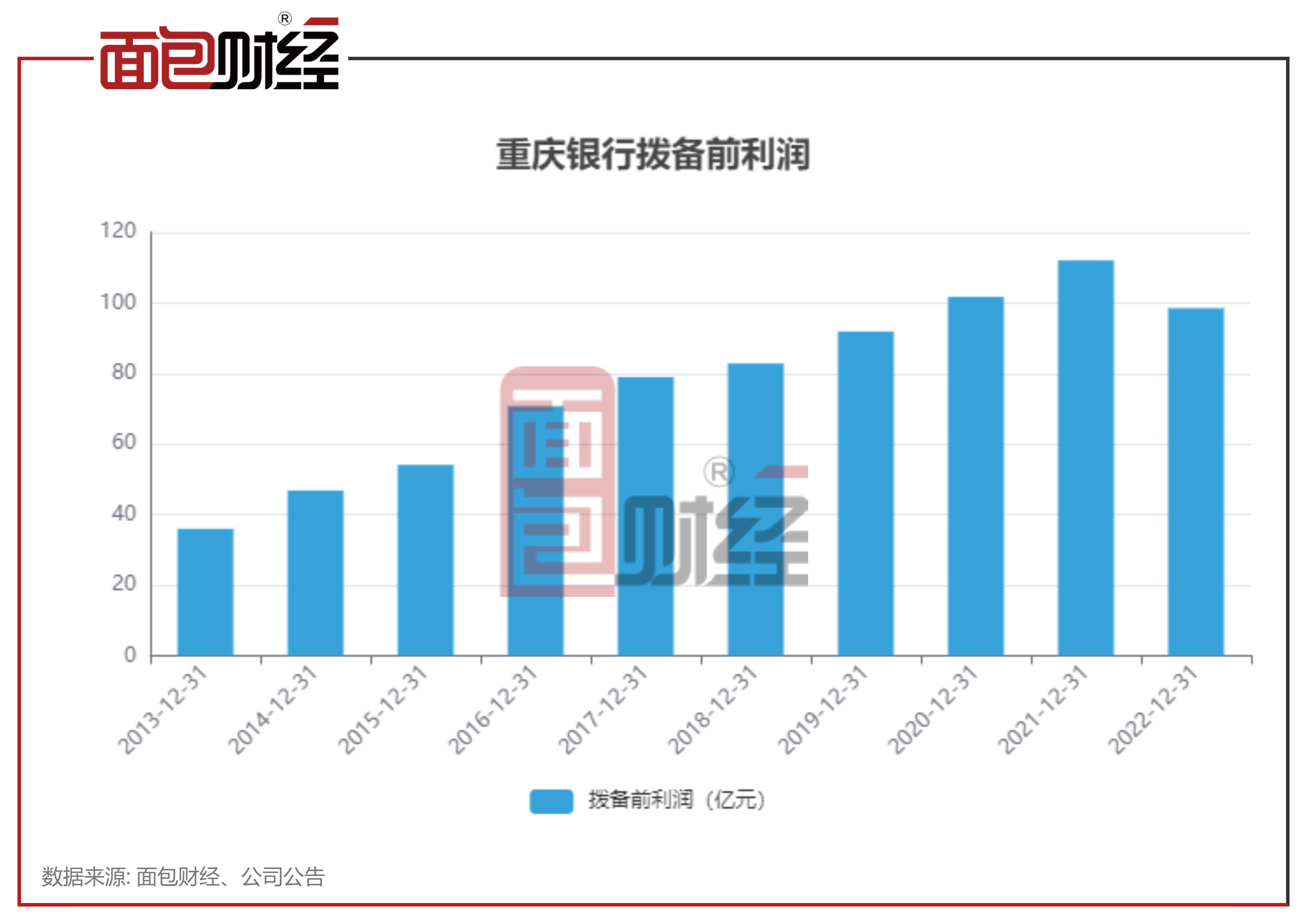 而2022年重庆银行的拨备前利润下降,归母净利润出现增长说明该行调整贷款减值损失对净利润贡献较大。