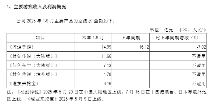 老游戏中,《问道手游》2025年1-9月实现总流水14.99亿元,同比下降7.02%。2025年第四季度,《问道手游》在App Store游戏畅销榜平均排名为第66名,最高至第43名。