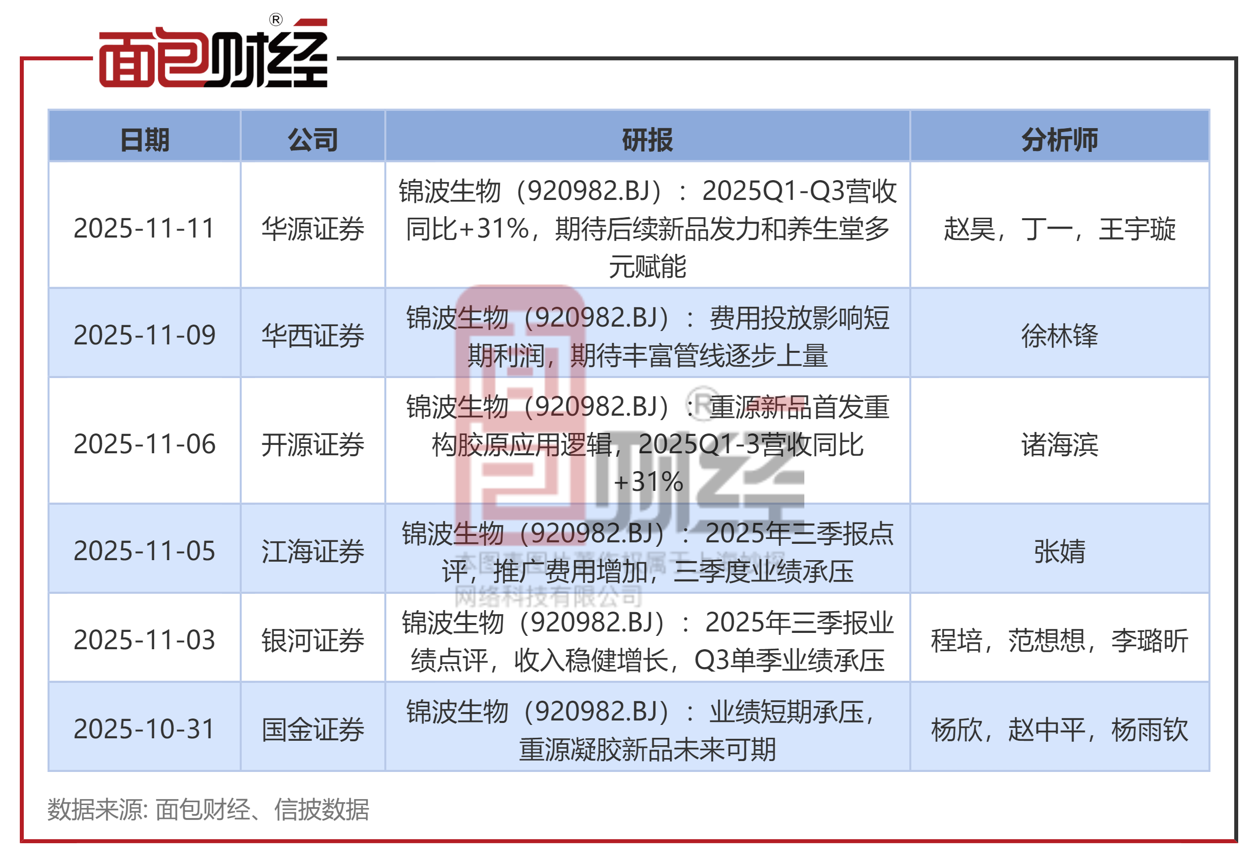 在锦波生物实控人实施大额减持的背景下,华西证券、华源证券、开源证券等于2025年11月密集发布看多研报,未充分提示实控人减持相关风险。