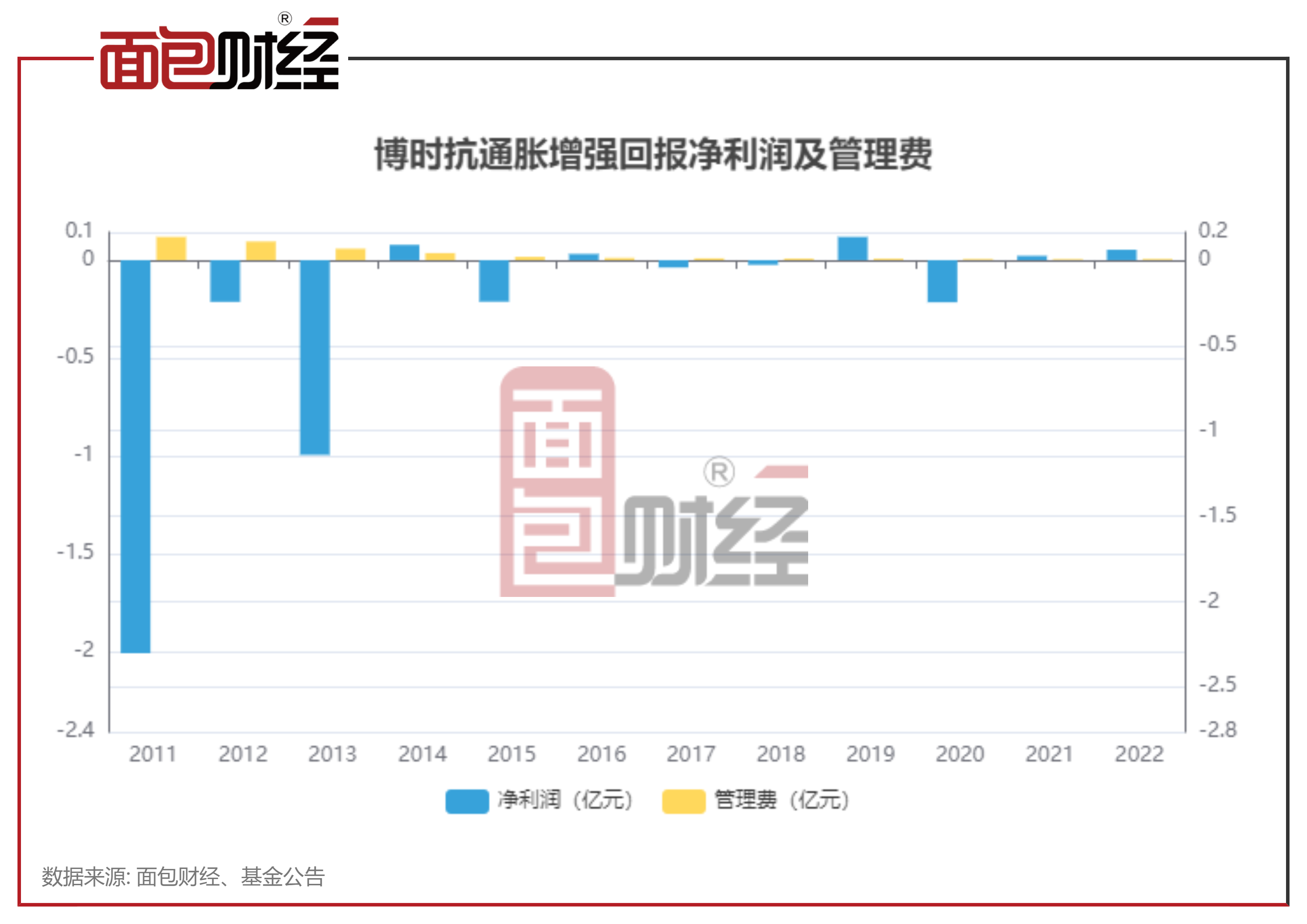 数据显示,截至2023年一季度末,博时抗通胀增强回报累计亏损3.41亿。