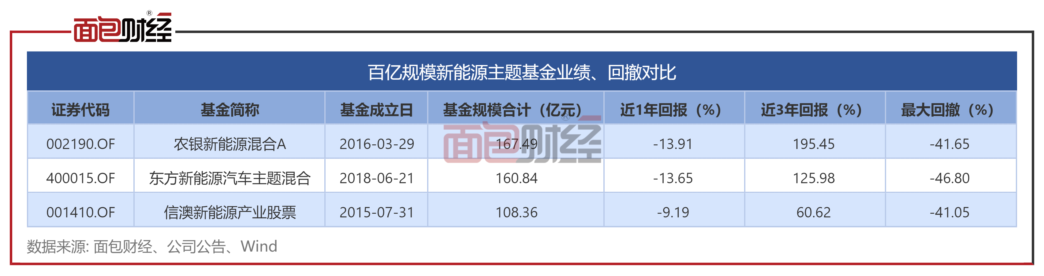 研究显示,全市场管理规模超过100亿元的新能源主题基金共有3只,分别是农银新能源混合、东方新能源汽车主题混合、信澳新能源产业股票。