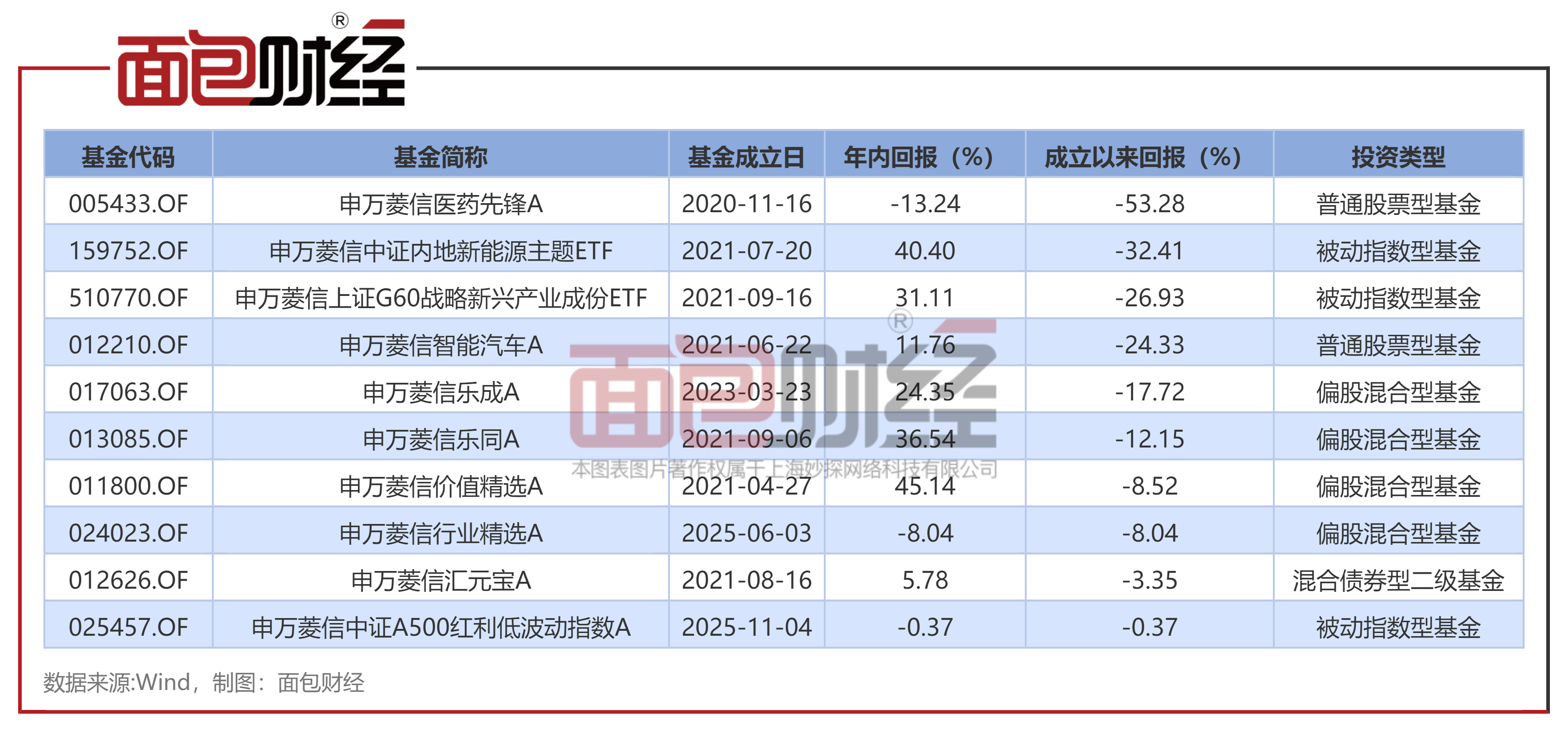 根据不完全统计,截至2025年12月23日(下同),申万菱信基金在管的10只公募产品(初始基金口径)成立以来净值处于浮亏状态。