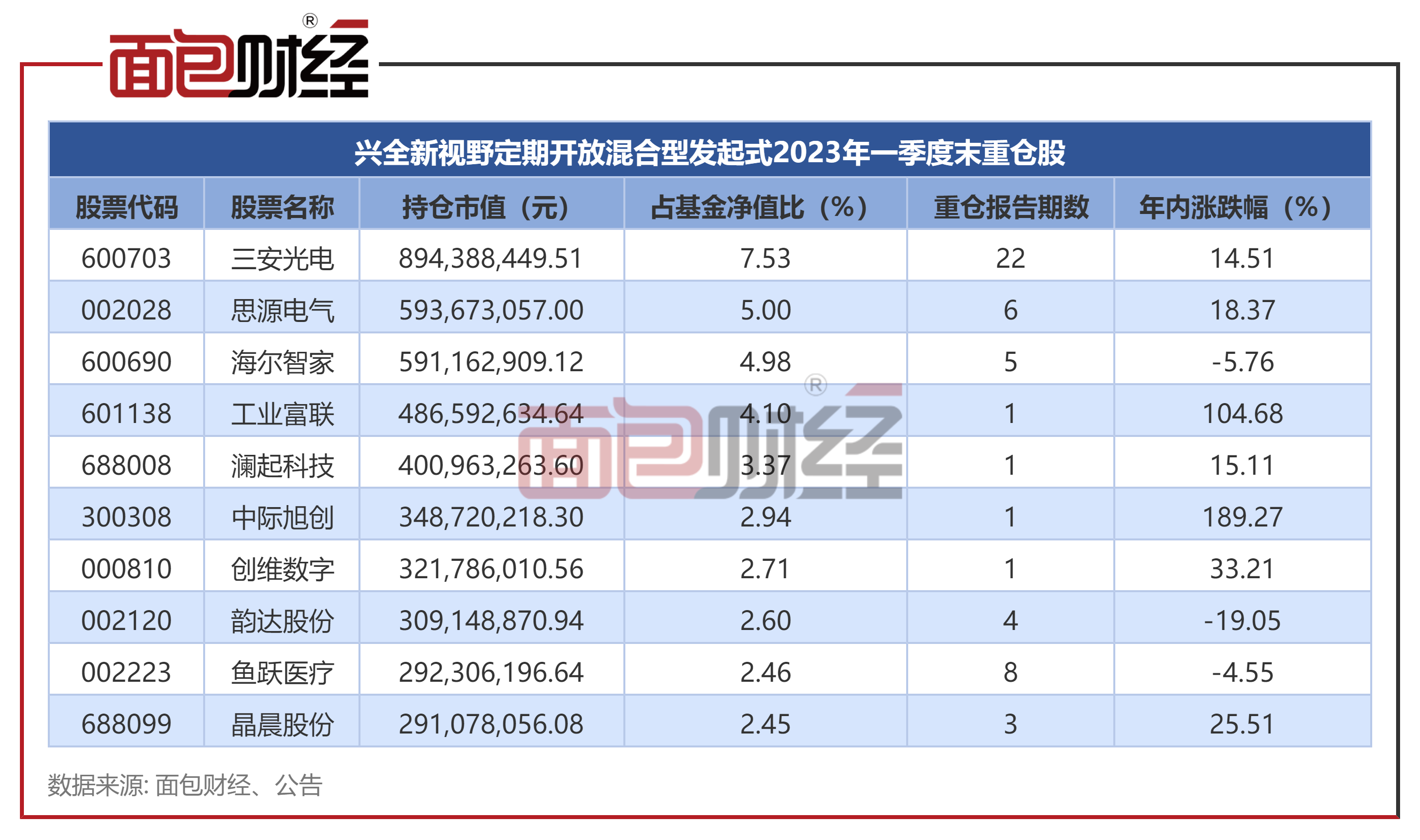 兴全新视野定期开放混合型发起式在2023年初至4月21日净值上涨9.42%,跑赢业绩比较基准逾7个百分点,同类排名260/2267。根据季报,该基金一季度实现利润10.22亿元。