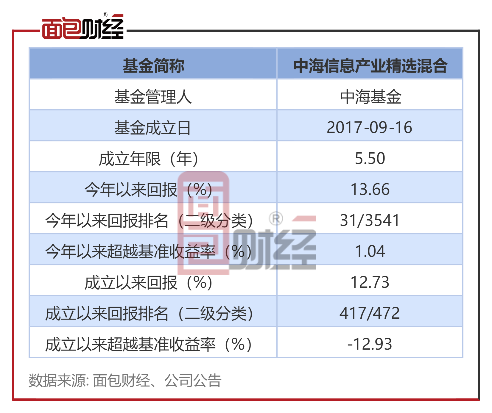 中海信息产业精选混合成立于2017年9月,管理人为中海基金。截止2023年3月14日,该产品累计运行约5.5年。