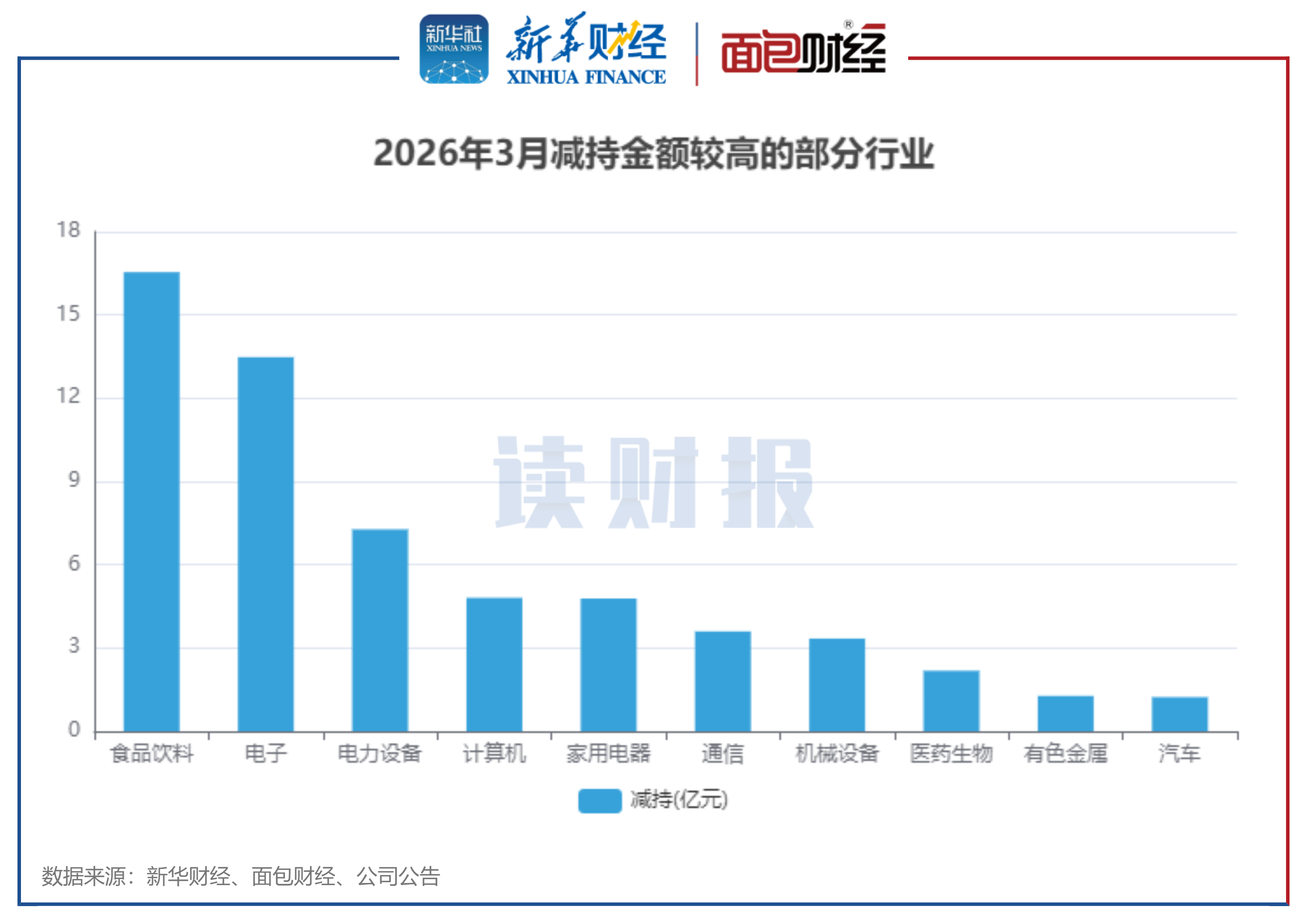 统计显示,食品饮料行业有3家上市公司于3月发生重要股东减持,其中伊利股份的减持金额最高。