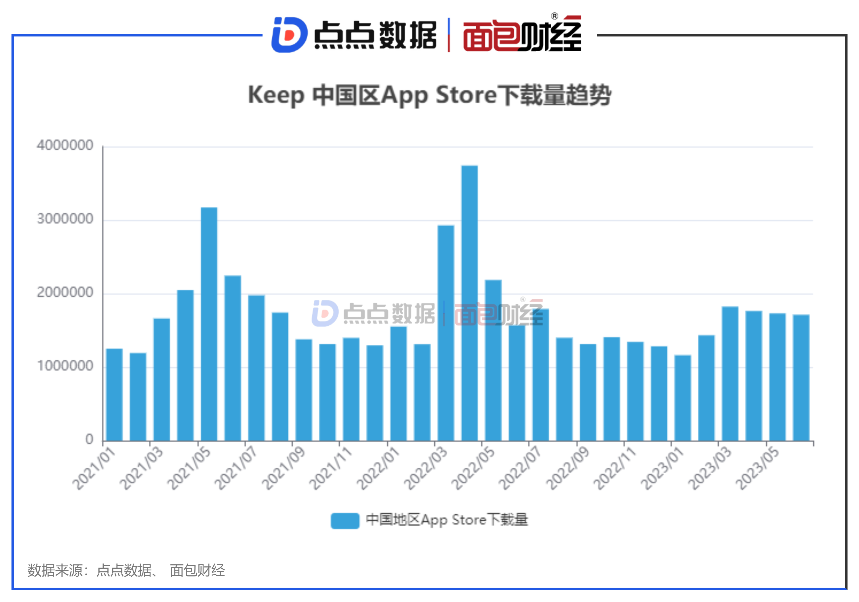 具体从月份看,点点数据显示,2023年3月,Keep在中国内地 App Store的下载量最大,超180万次,但较去年同期下降近40%